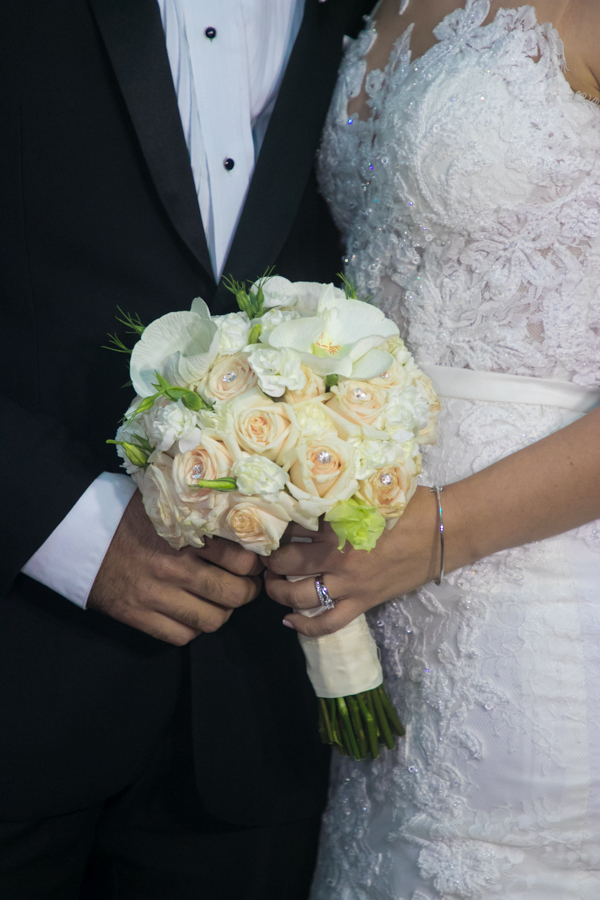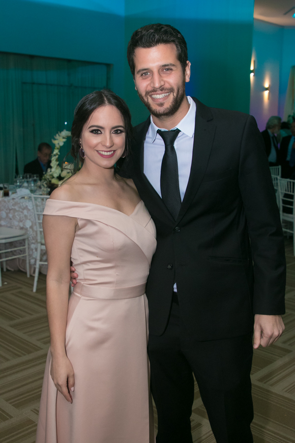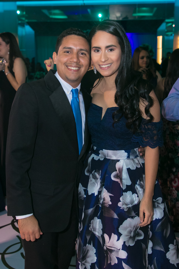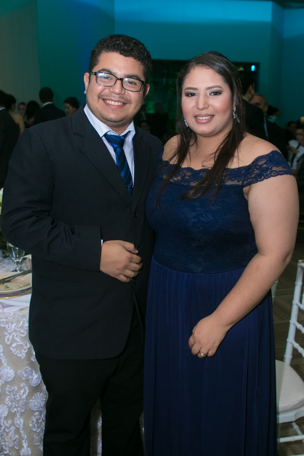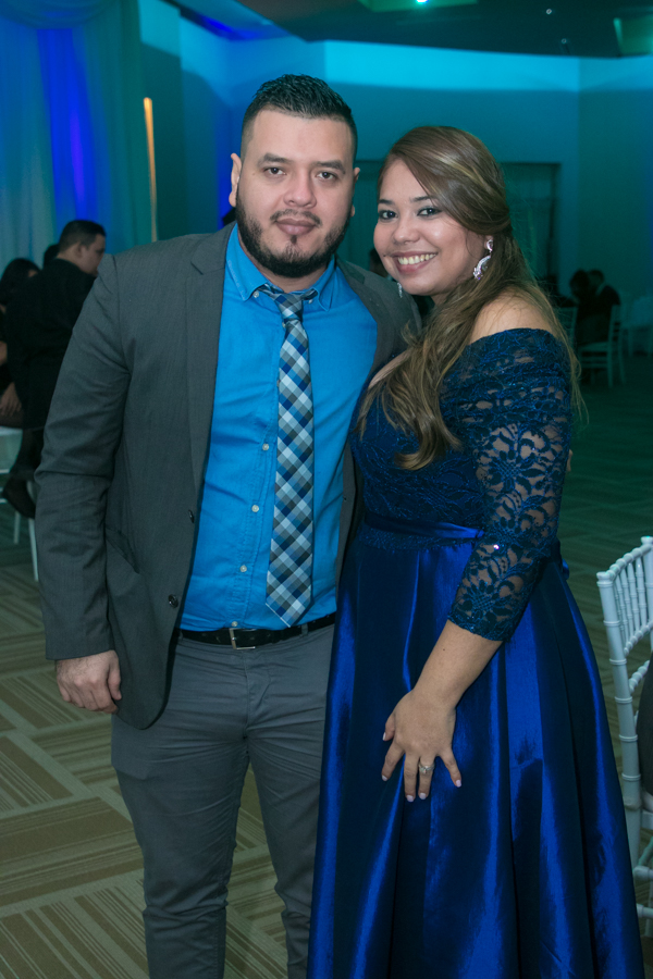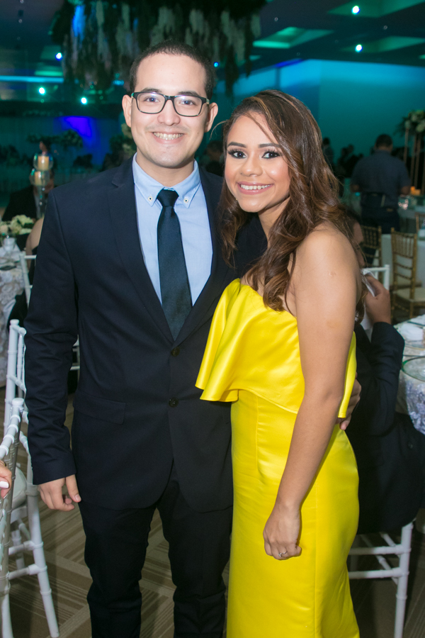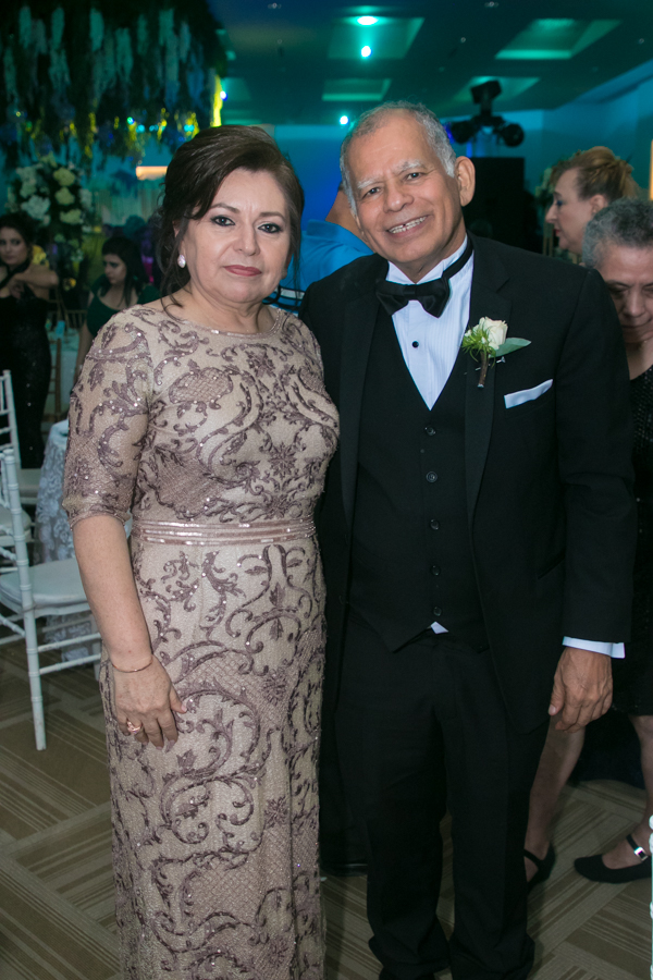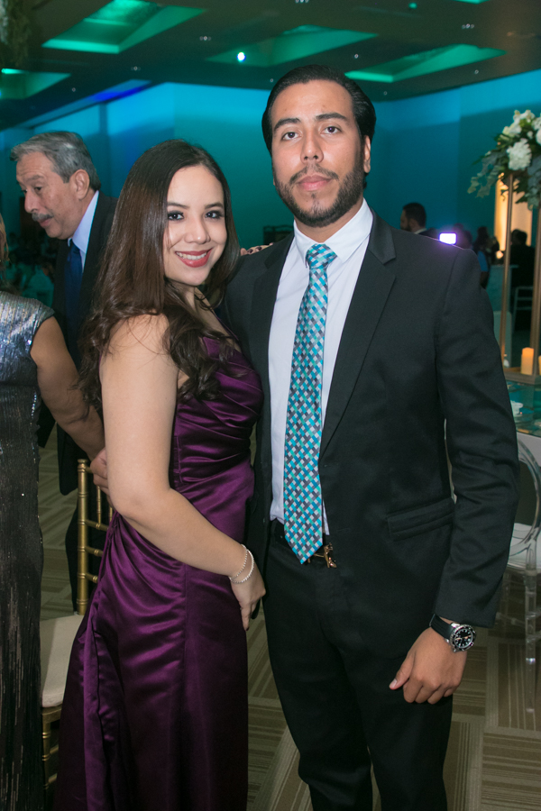 Ella, ataviada con un Pronovias de España. Él, de riguroso tuxedo. Así de elegantes y sumamente felices, reciben la bendición nupcial tras cerca de tres años de noviazgo oficial