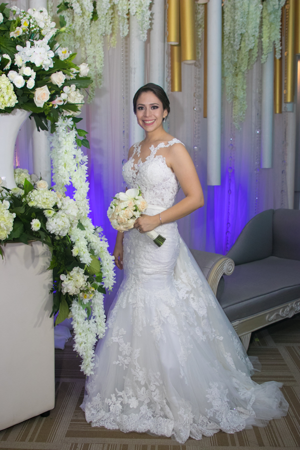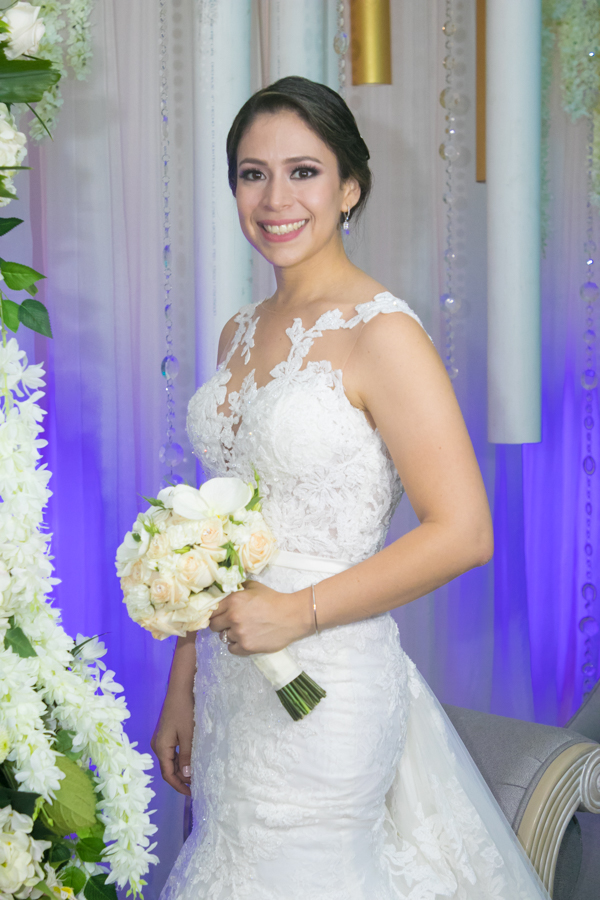 La enamorada Cindy Carolina García Guzmán lució un diseño de la firma Pronovias de España. Además, su estilismo, natural y muy contemporáneo. Foto Gerardo E. Barrera