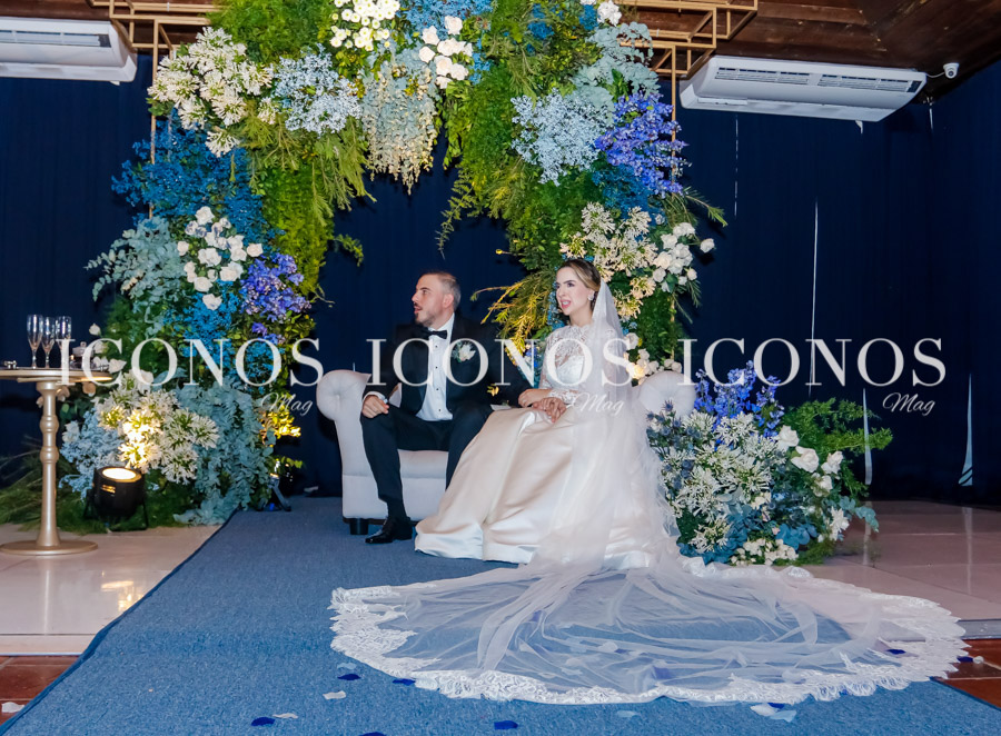 Tegucigalpa. Los enamorados Celeste Redondo Marini y Erick Lacayo Cuéllar han celebrado su anhelada boda eclesiástica en una romántica y elegante velada con delicados detalles en tonos celestes.