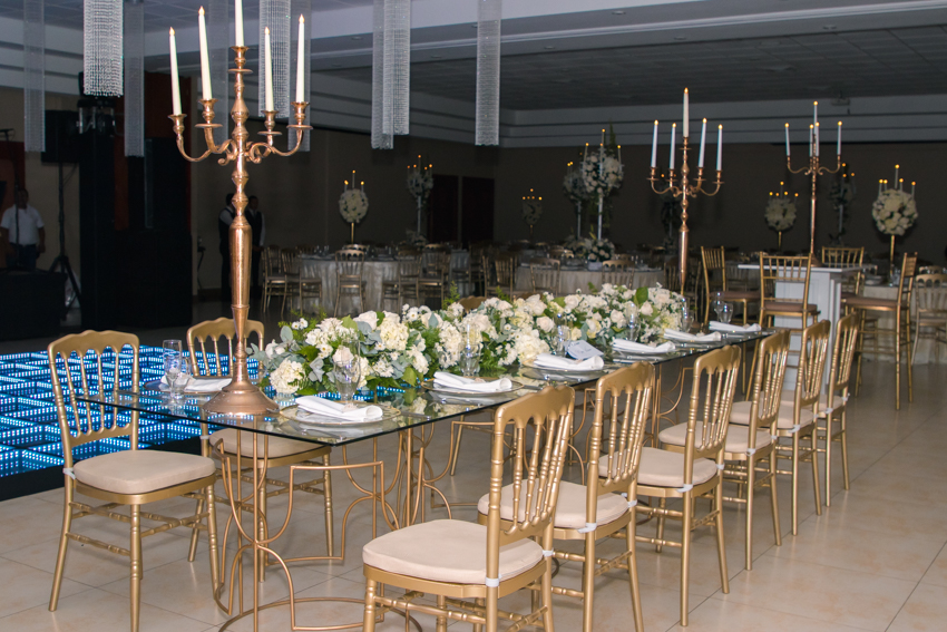 El salón San Pedro fue engalanado con detalles marfil y oro para el casamiento de Claudia Amaya y Diego Paz. Foto Gerardo E. Barrera