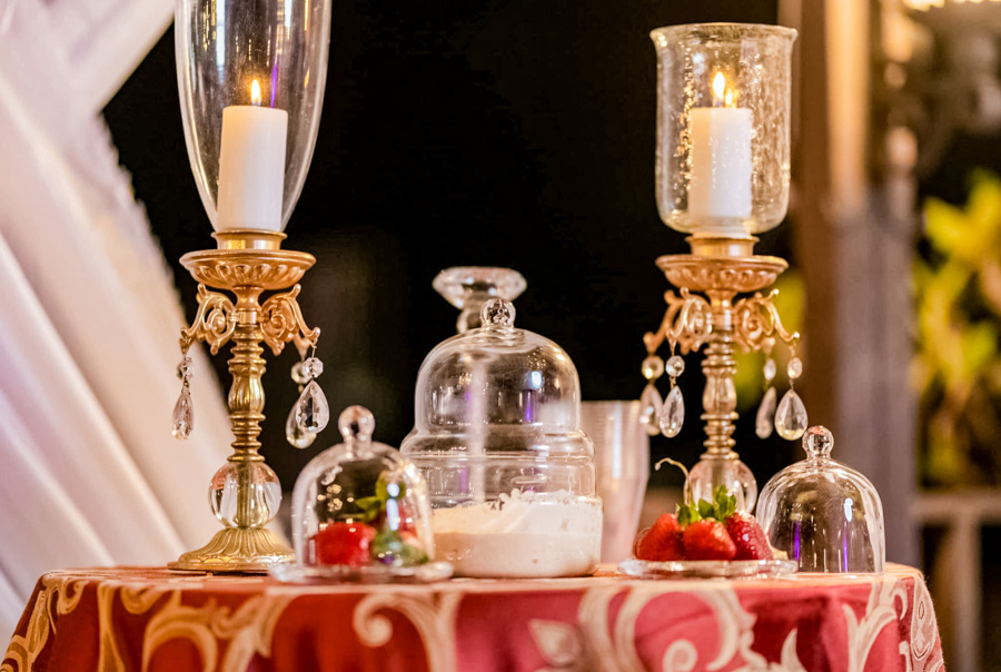 Los tonos red & gold han imperado en la recepción. Además, a los asistentes se les han obsequiado antifaces característicos de las grandes fiestas venecianas.