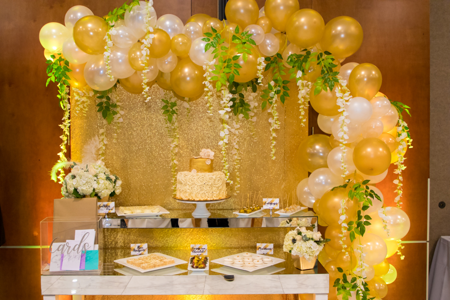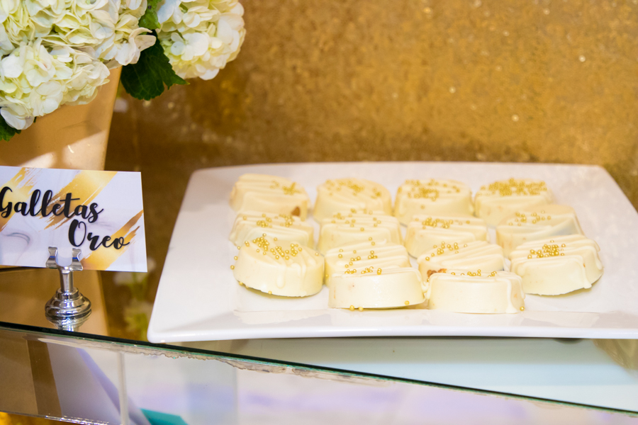 [/vc_column_text][thb_gap height=»30″][vc_column_text]Muy temprano, tal y como convocaba la invitación, fueron llegando los invitados. La agasajada Yessenia González, los acogió con sonrisa plena.La temática de la fiesta se inspiró en los Fabulosos Dorado5, los colores gold y beige fueron los grandes protagonistas de la noche.