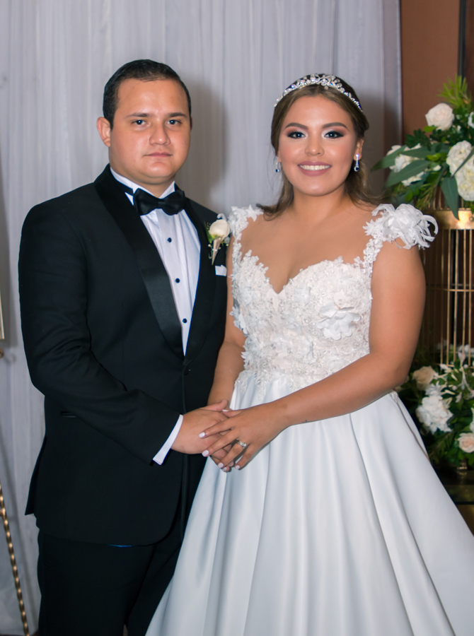 [/vc_column_text][thb_gap height=»30″][vc_column_text]La recepción continuó, una hora después, en el salón Palestina del Club Hondureño Árabe. La experta Irela Pérez, diseñó todo, desde el montaje hasta el protocolo. Doris Zelaya, fue la florista encargada de la ambientación primaveral.Como padrinos de la boda Santos Pinto, se escogieron a los esposos Bessy Banegas de García y Hugo García, comprometidos en velar porque Daniela Pinto y Bayron Santos tengan una ejemplar relación matrimonial.[/vc_column_text][thb_gap height=»30″][thb_image image=»15496″][vc_column_text]