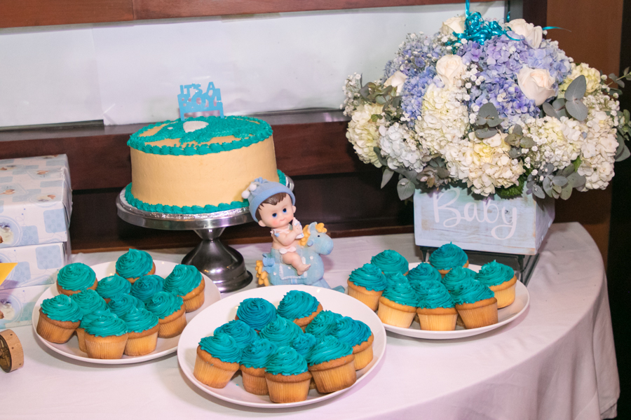 Desde las 6.00 pm y hasta casi las 10.00 pm, unas 40 invitadas compartieron en un ambiente blue spring, con delicados arreglos de hortensias y rosas y detalles infantiles.