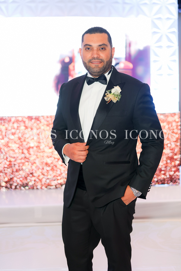 Judá Osejo ha optado por un elegante smoking negro, una creación del famoso diseñador Yoyo Barrientos.
