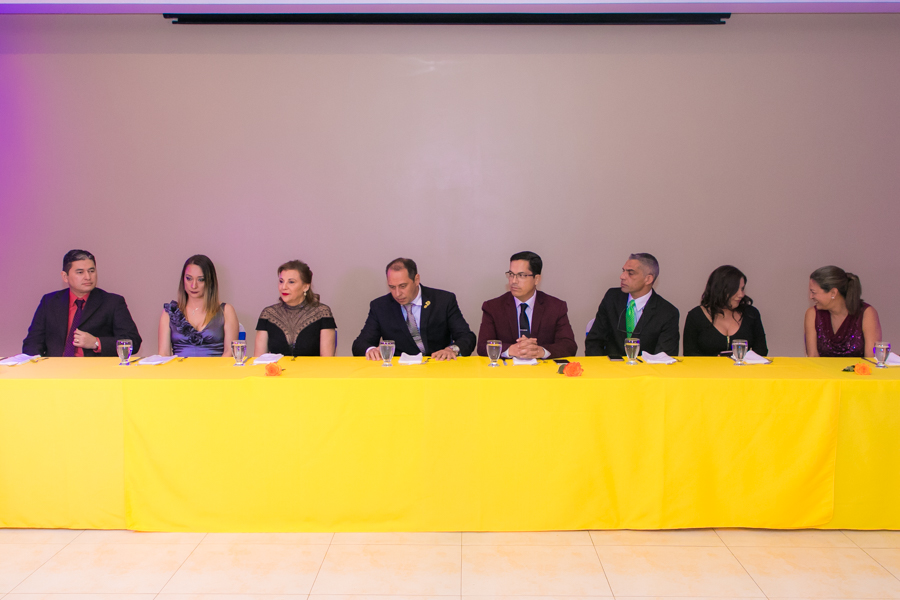 Tras un breve preámbulo de bienvenida, en la que los anfitriones posaron al completo para el recuerdo. la directiva del colegio inició la ceremonia y entrega de distinciones.