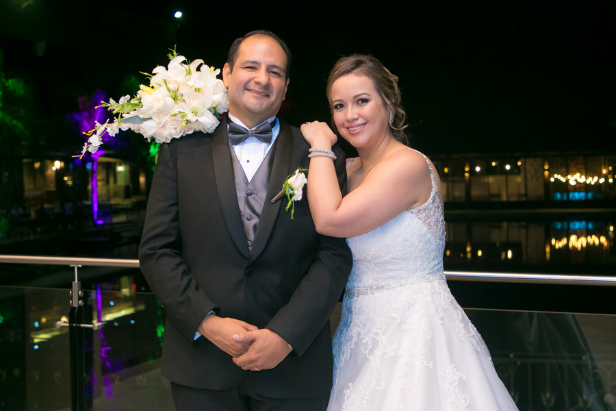 Los novios se ataviaron con mucha distinción. Él, de tuxedo clásico, y ella, con un diseño de la australiana Maggie Sotero, en encaje bordado y de diseño tradicional.