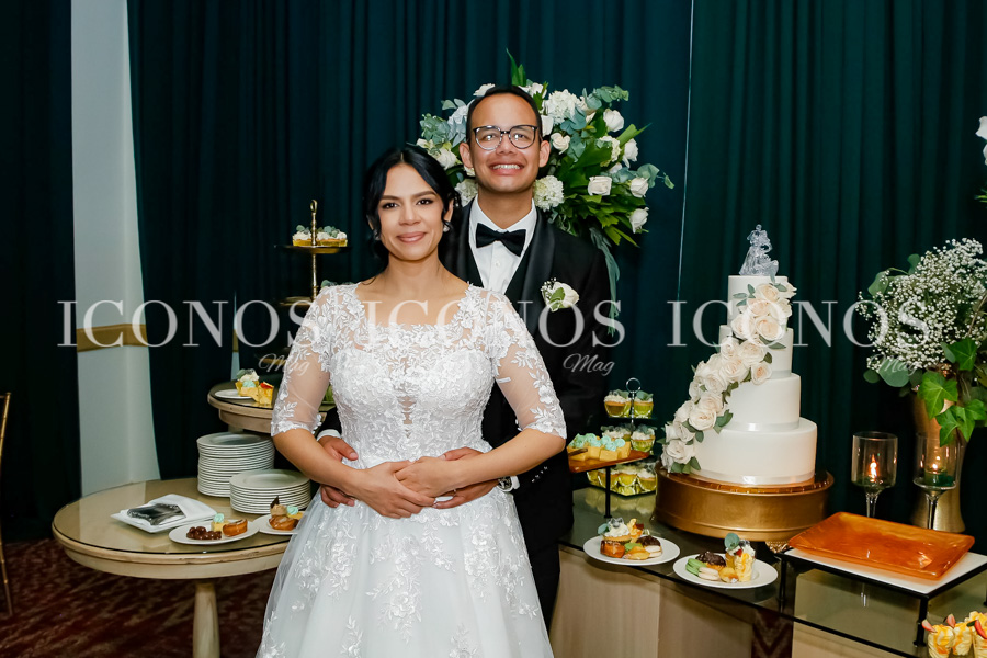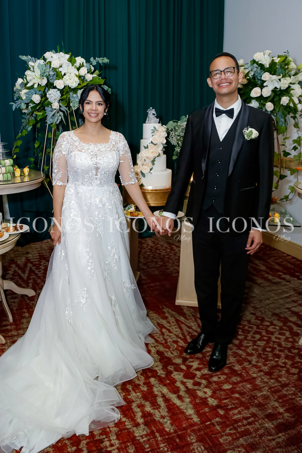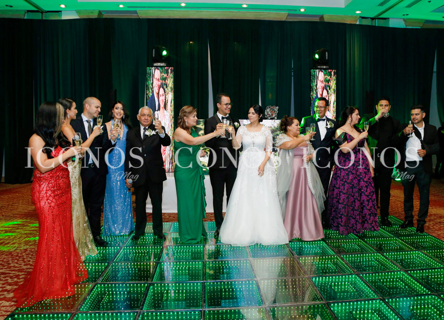 Tras el protocolo religioso, Elsa Scarleth Mayorquín Girón y Rafael Jerez Moreno han llegado al salón Grand Real del hotel Real InterContinental Tegucigalpa para su festejo nupcial.