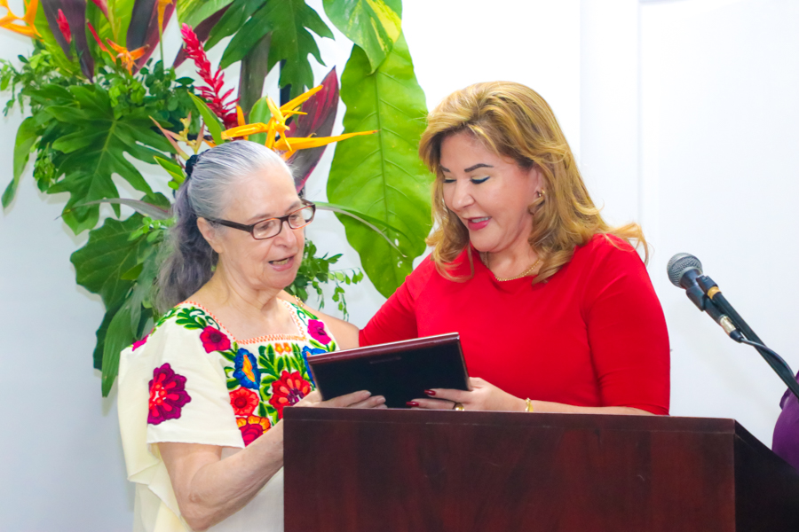 La distinción especial fue para la escritora Helen Umaña, encantada, asombrada y agradecida por tan grato recuerdo de su primera vez de nuevo en la ciudad que tanto ama y con gente querida.