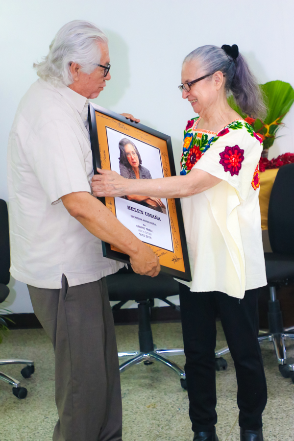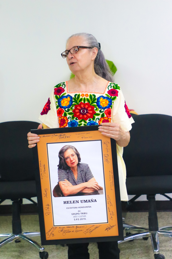 La ilustre dama de las letras recibió honores en la velada Laureles: homenaje a artistas en San Pedro Sula y en honor al polígrafo Rafael Heliodoro Valle.