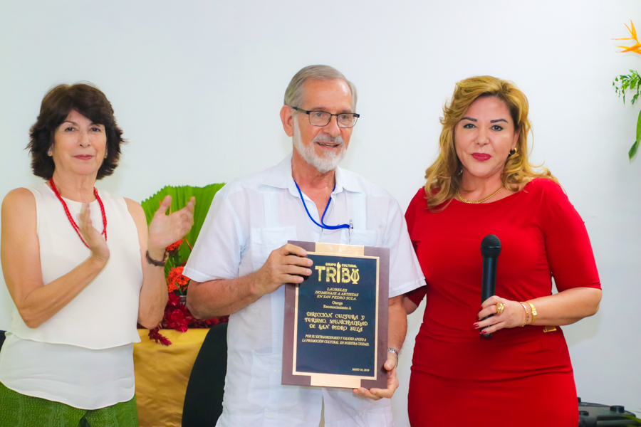 En la celebración se le entregó una distinción a Marco Rietti, por los aportes que hace la Unidad de Cultura de la Municipalidad de San Pedro Sula.