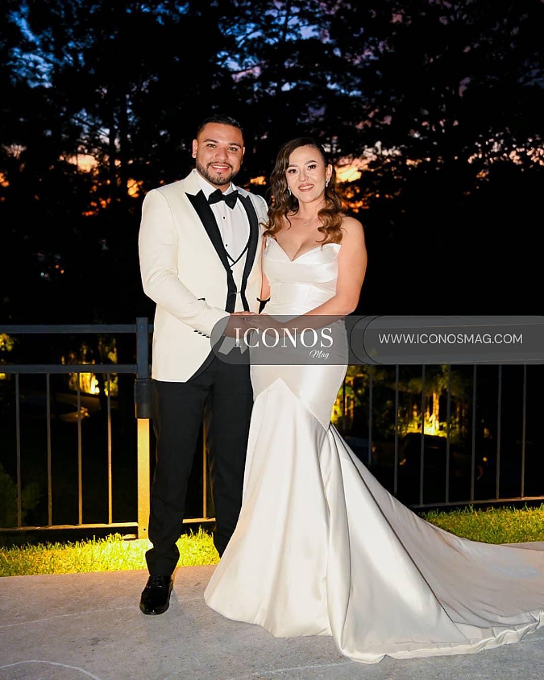 El novio ha optado por vestir un tuxedo white & black con pajarita y solapas de pico by Black Tie que lo han hecho destacar junto a su amada.