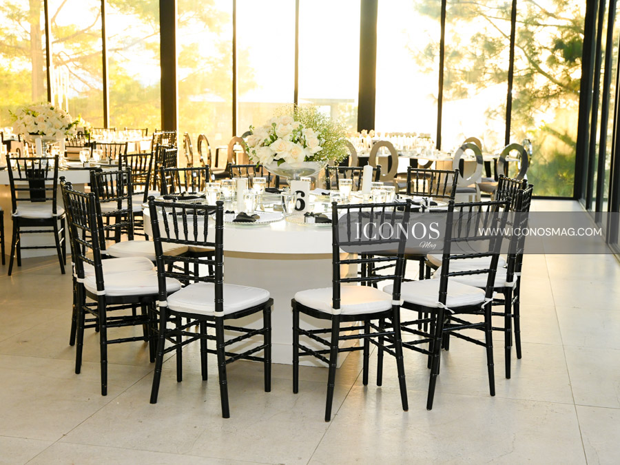 Tosher’s ha diseñado una estancia impecable que ha fusionado sillas cocteleras de acrílico, Oval silver, mesas circulares, imperiales y serpentinas. Además salas lounge de terraza e interiores y una mesa exclusiva para los pequeños que asistieron al enlace.