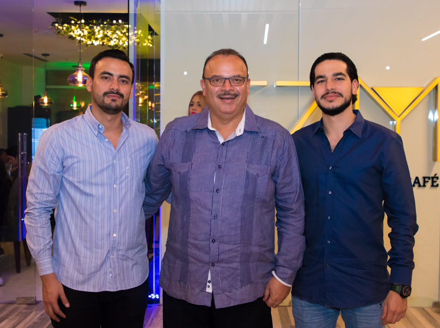 Tulio Romero y Meivy Castañeda de Romero con Gabriel y Marcelo Larach departieron, además, en la inauguración de Ezme Vino & Café. Foto Gerardo E. Barrera
