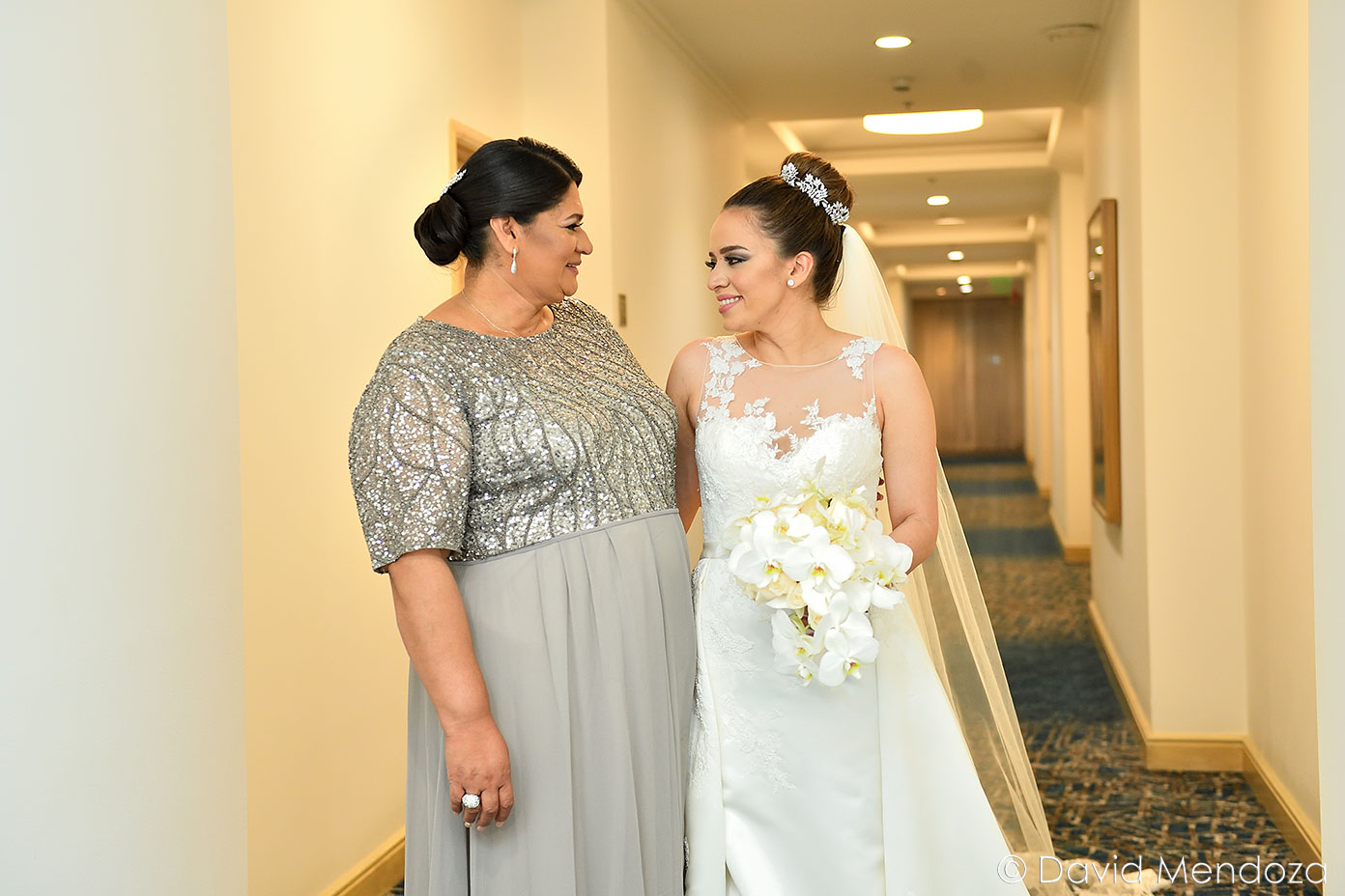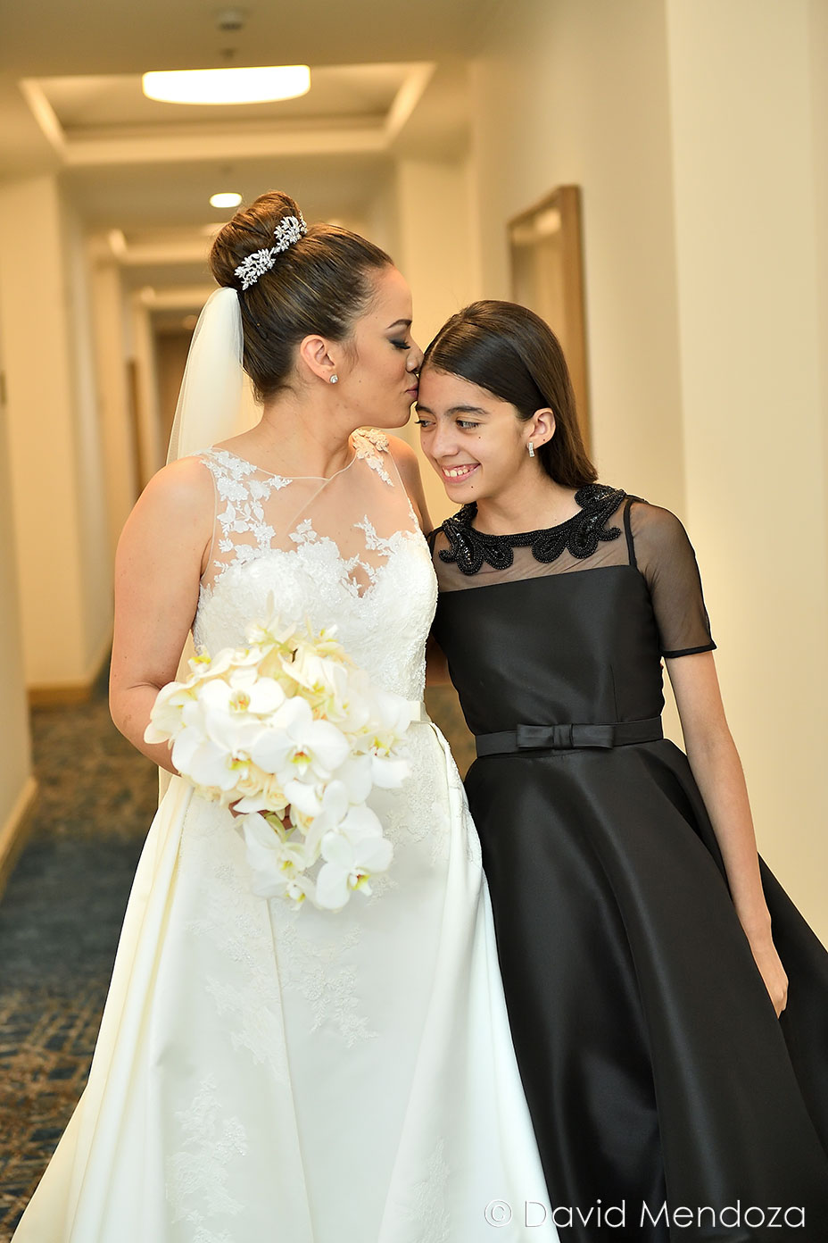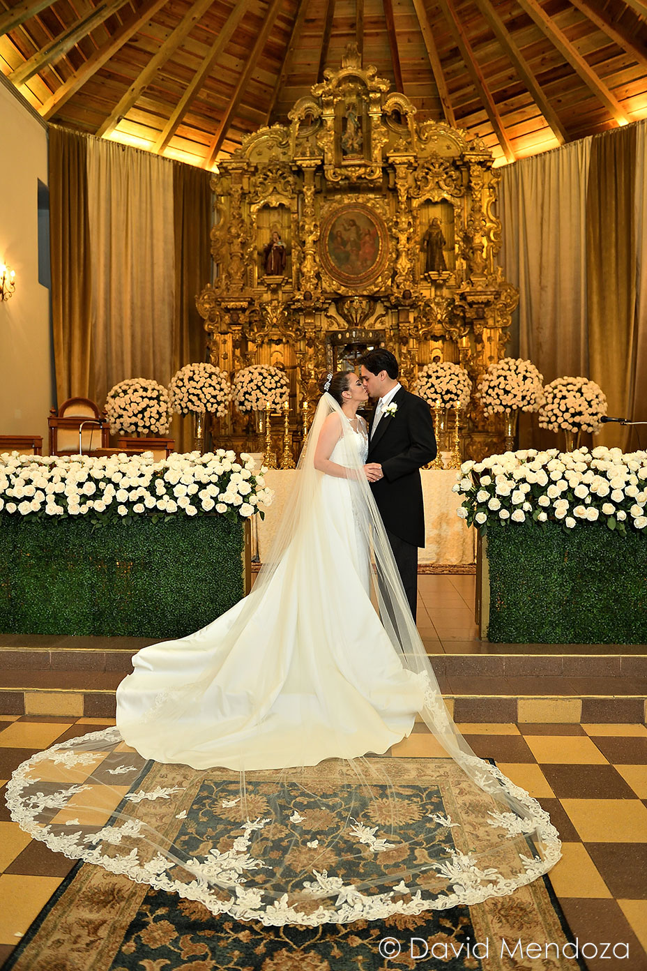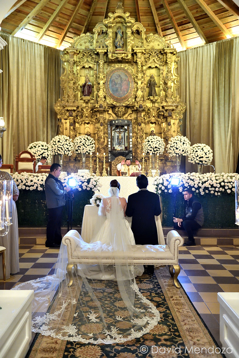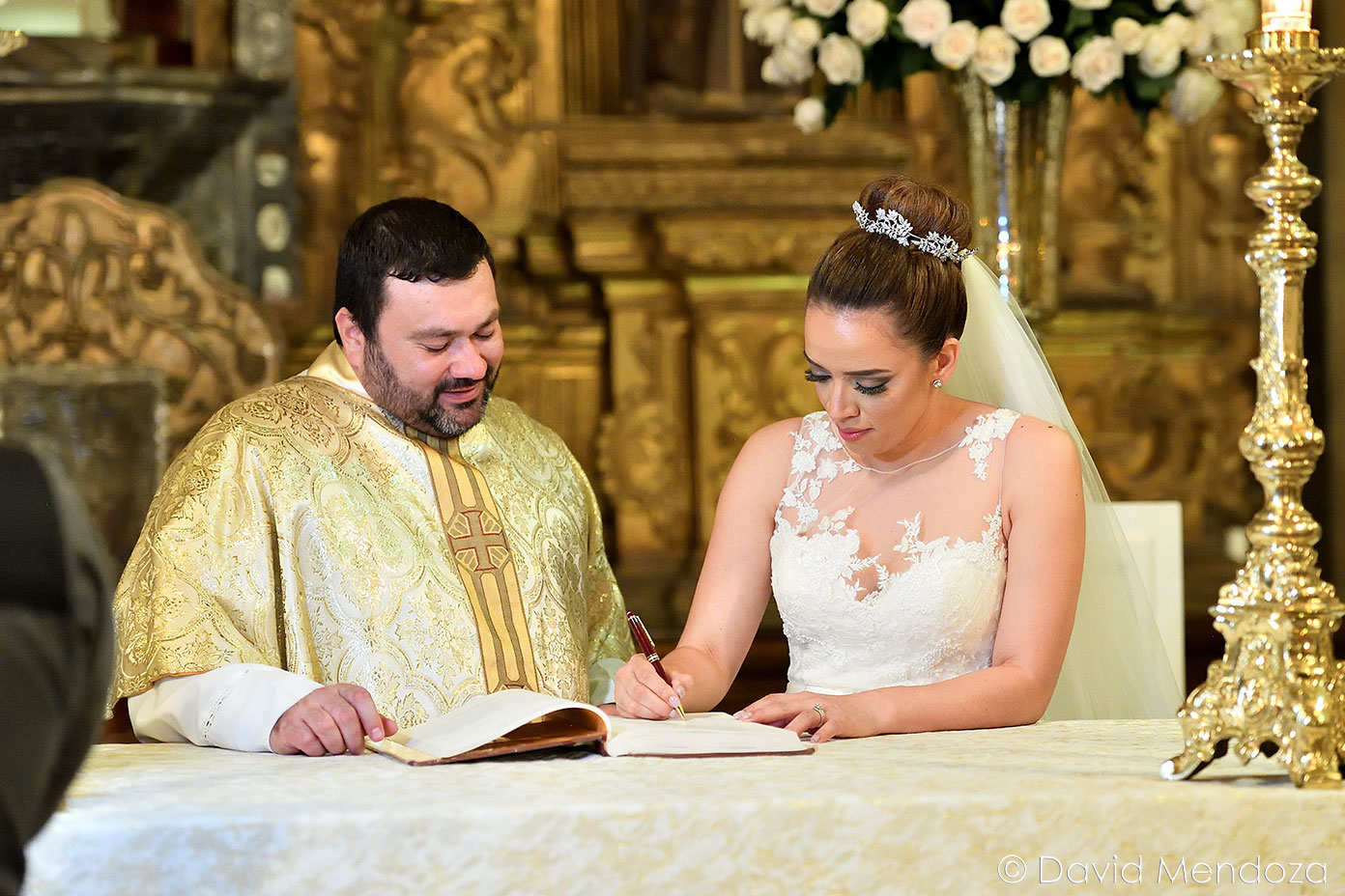 La novia lucía un vestido de corte clásico, con escote ilusión y hermoso velo catedral con aplicación de encaje floral.