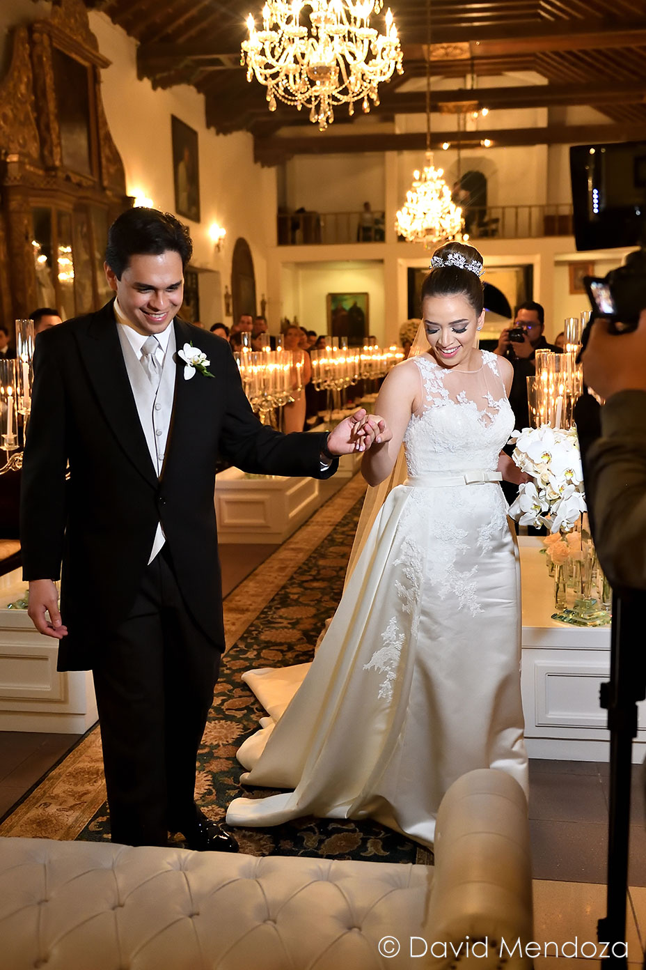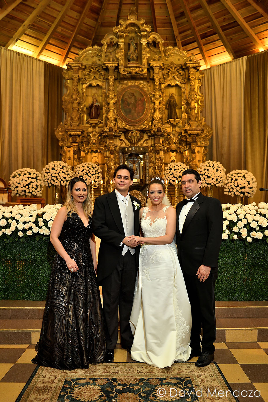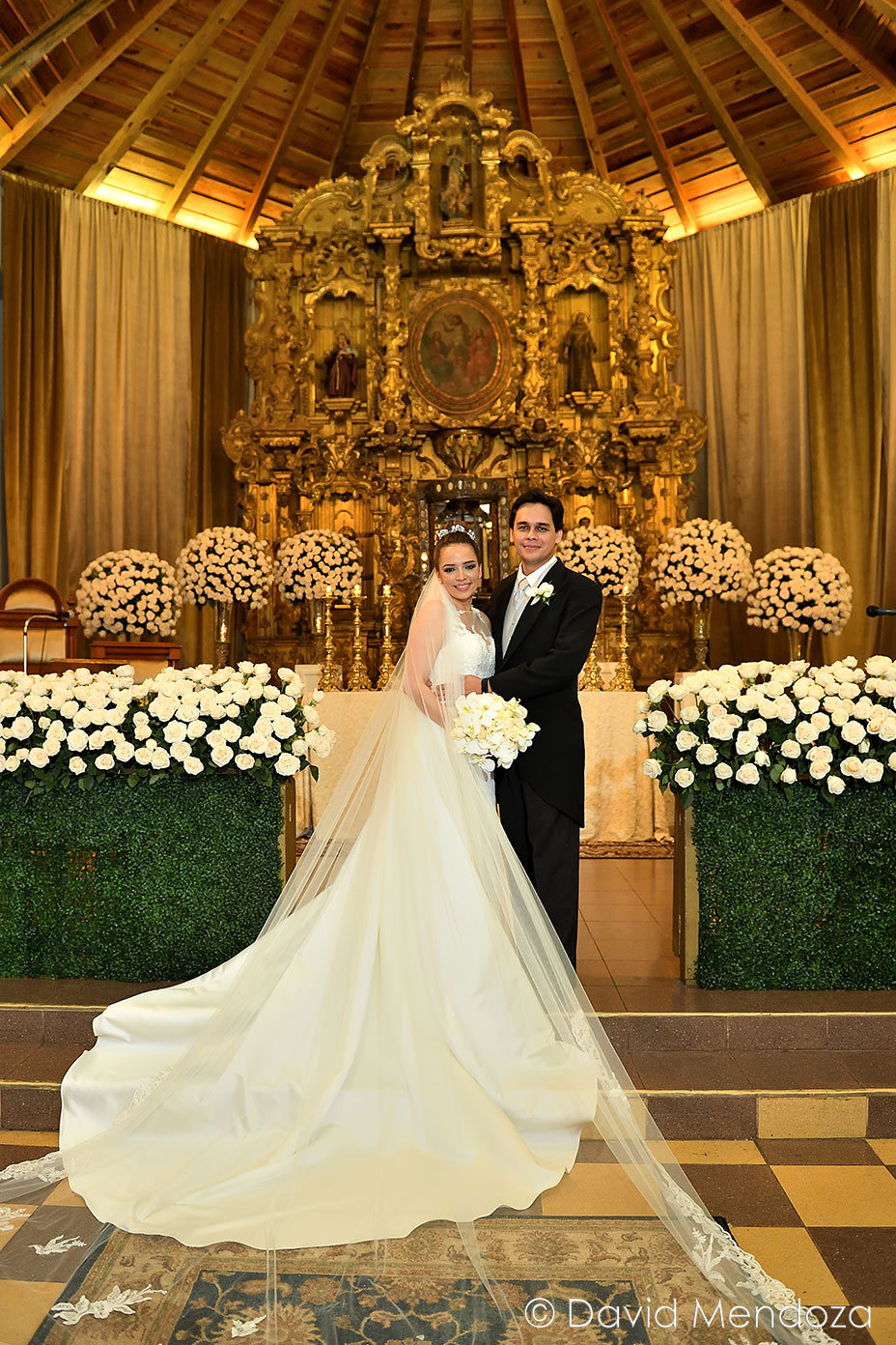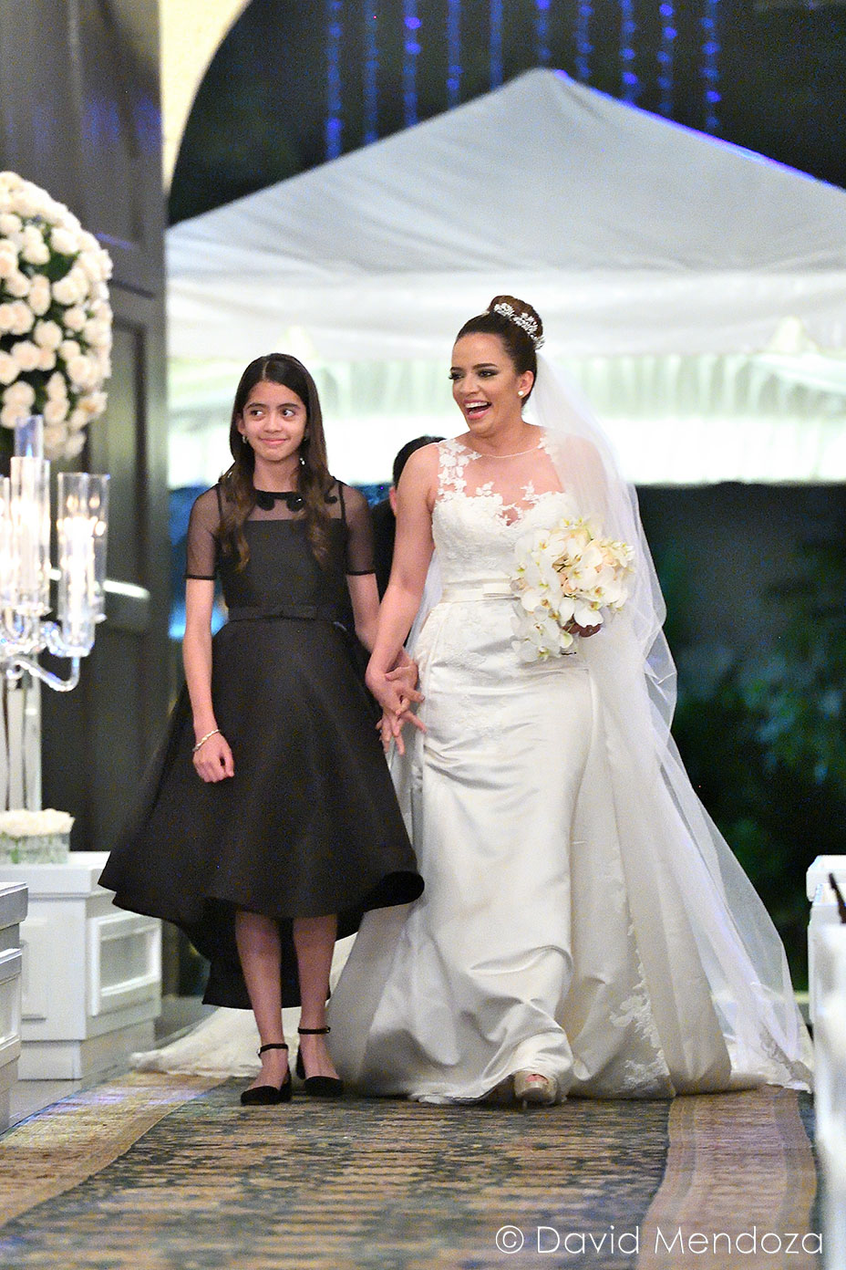Además, llegó de la mano de su hija Nicole Fontecha Matamoros, quien la entregó felizmente a su prometido Alejandro Galeano, que la esperaba ante el altar.