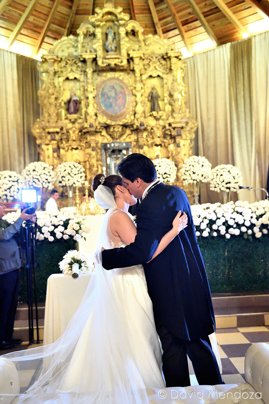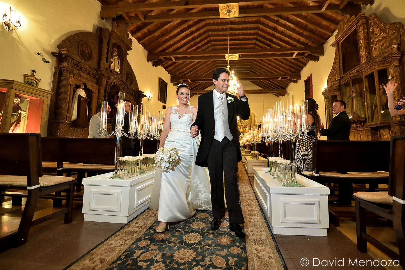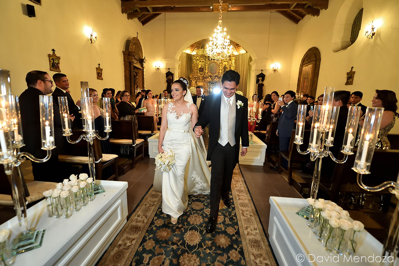 Además, llegó de la mano de su hija Nicole Fontecha Matamoros, quien la entregó felizmente a su prometido Alejandro Galeano, que la esperaba ante el altar.
