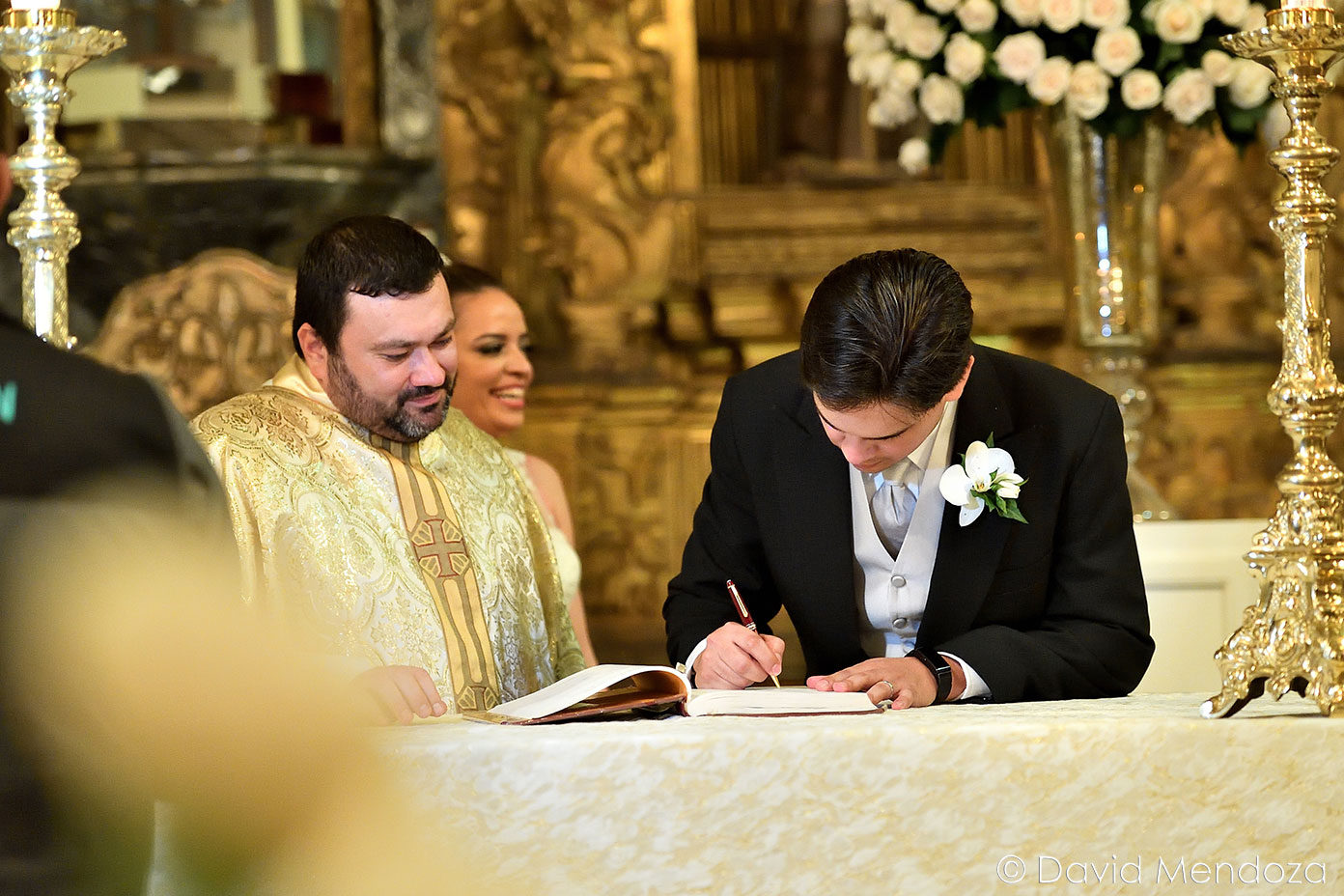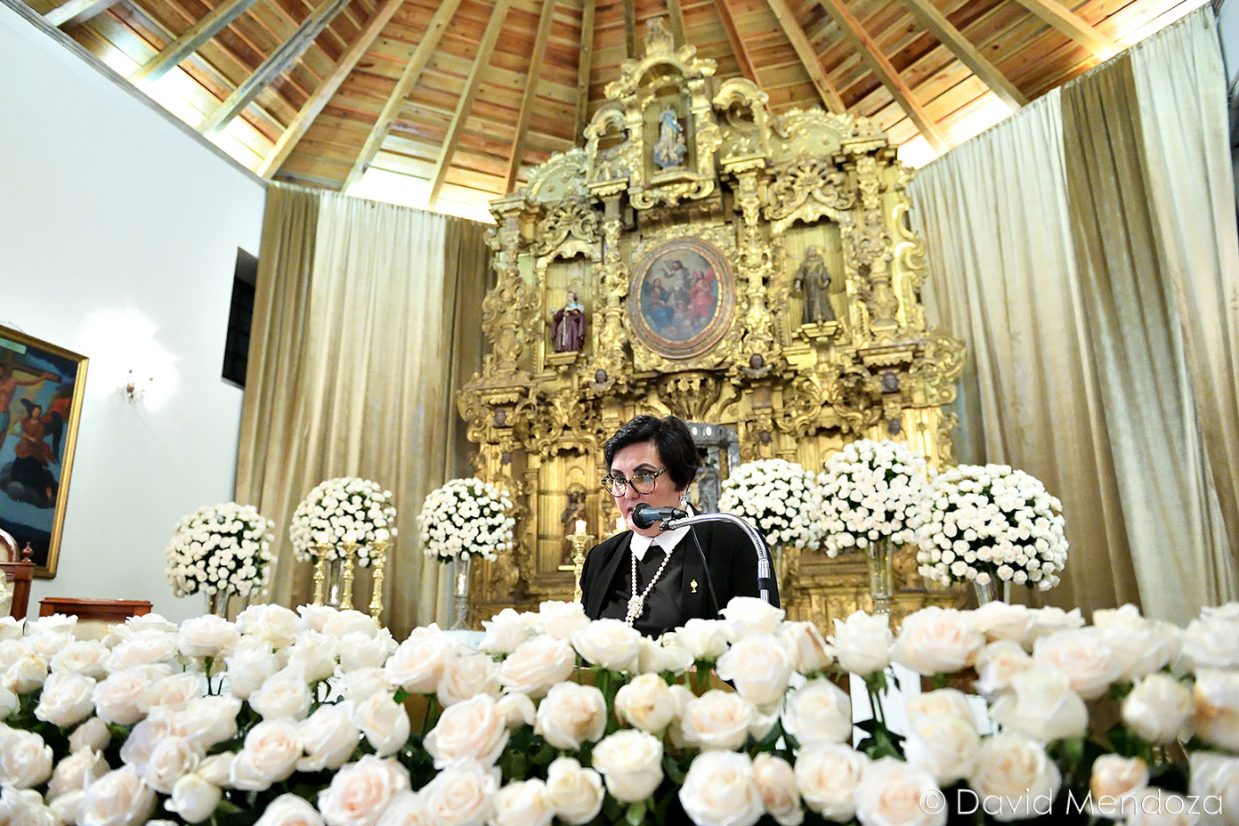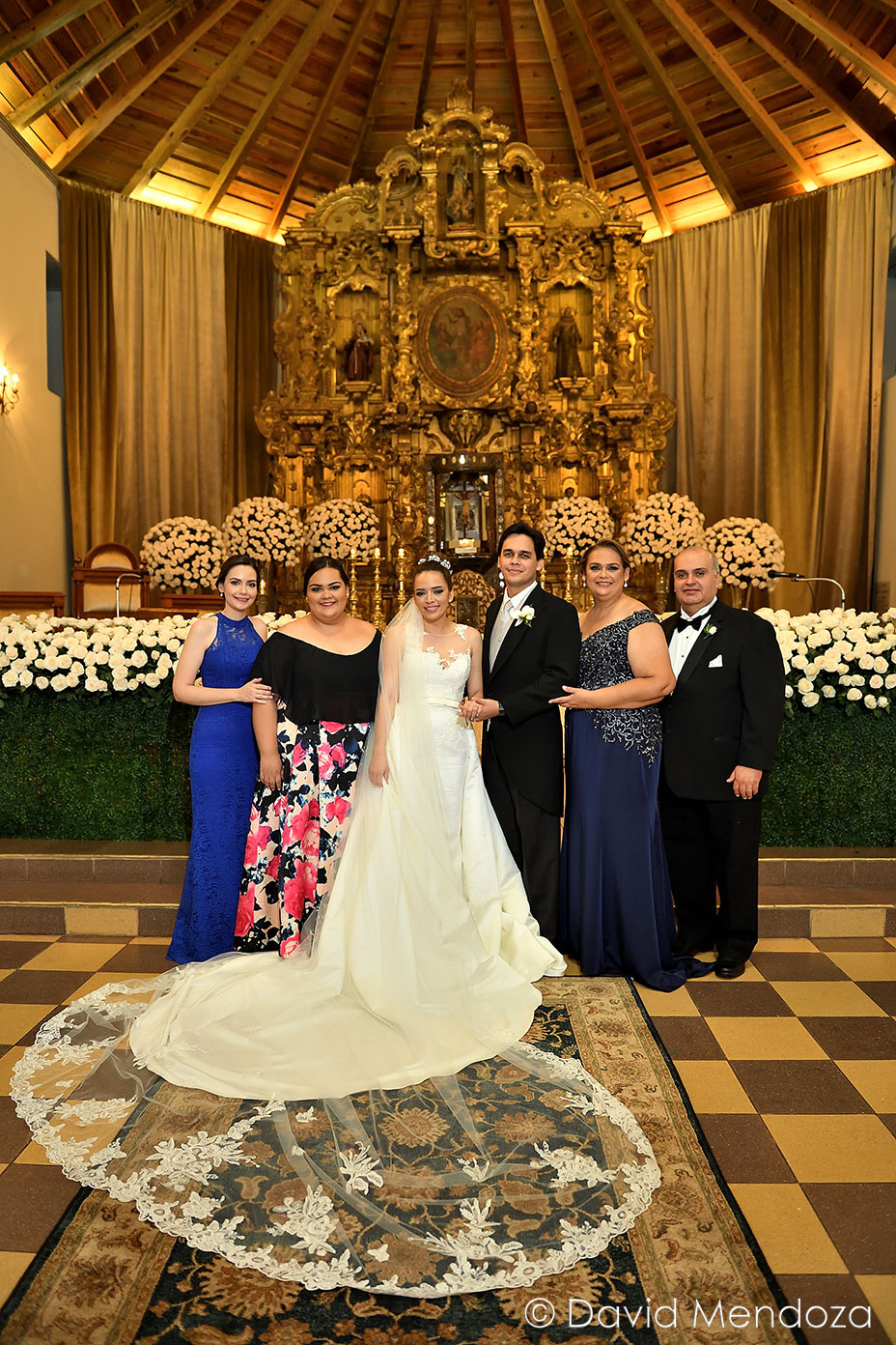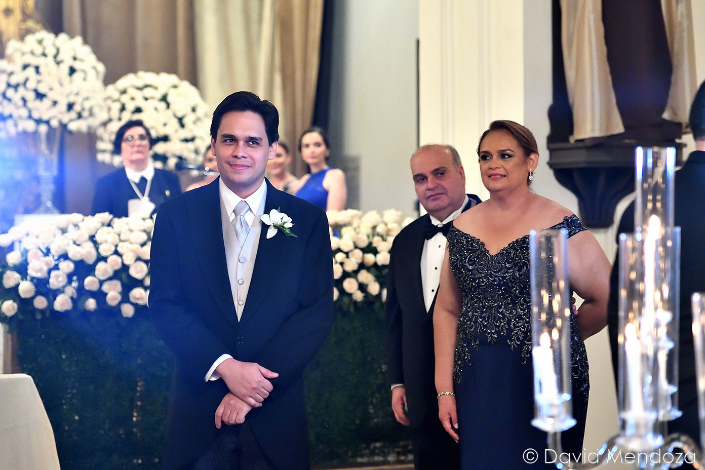 Además, llegó de la mano de su hija Nicole Fontecha Matamoros, quien la entregó felizmente a su prometido Alejandro Galeano, que la esperaba ante el altar.