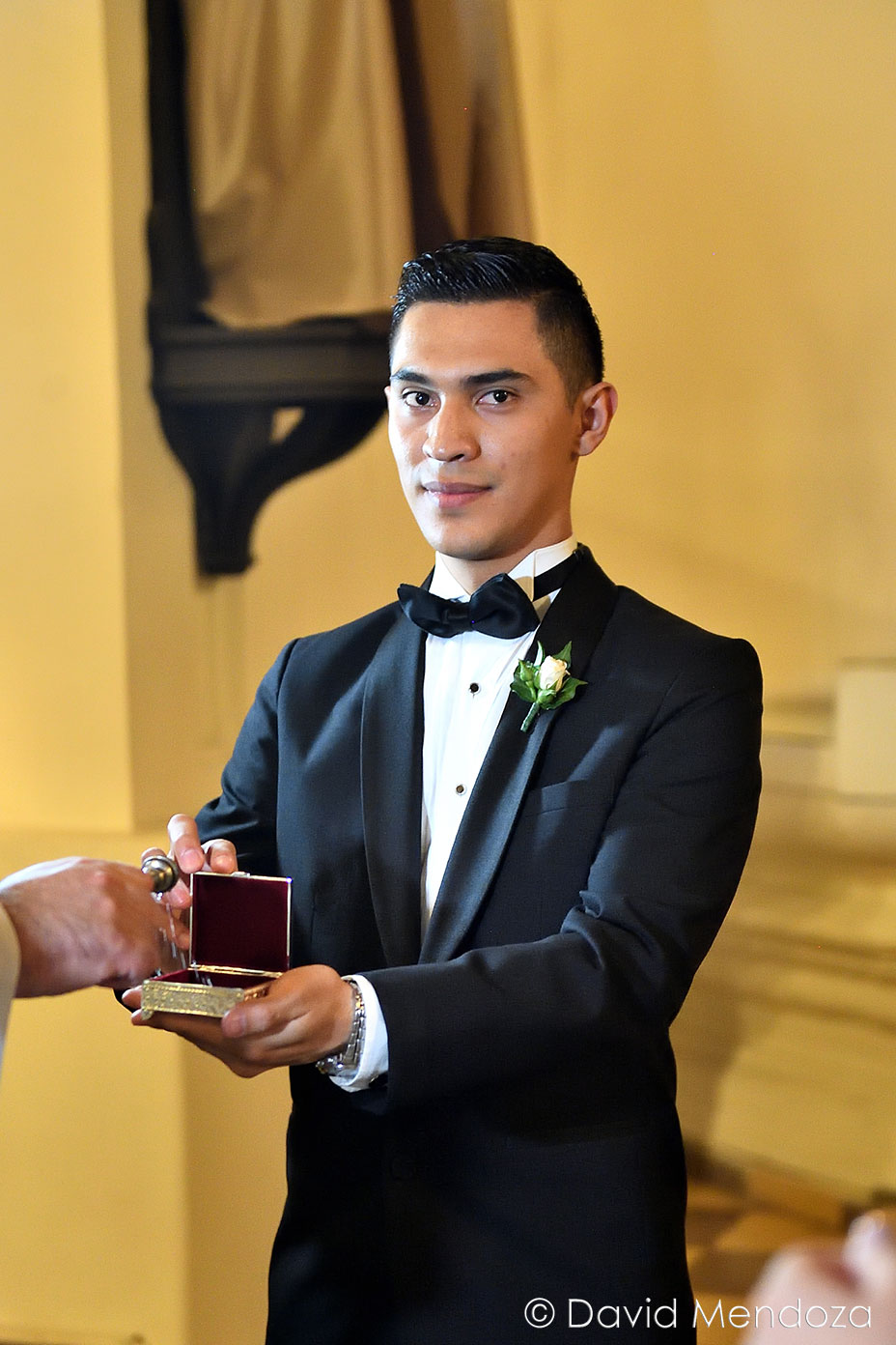 El novio, se decantó por un tuxedo que lo hice verse de lo más galante para esa especial ocasión.