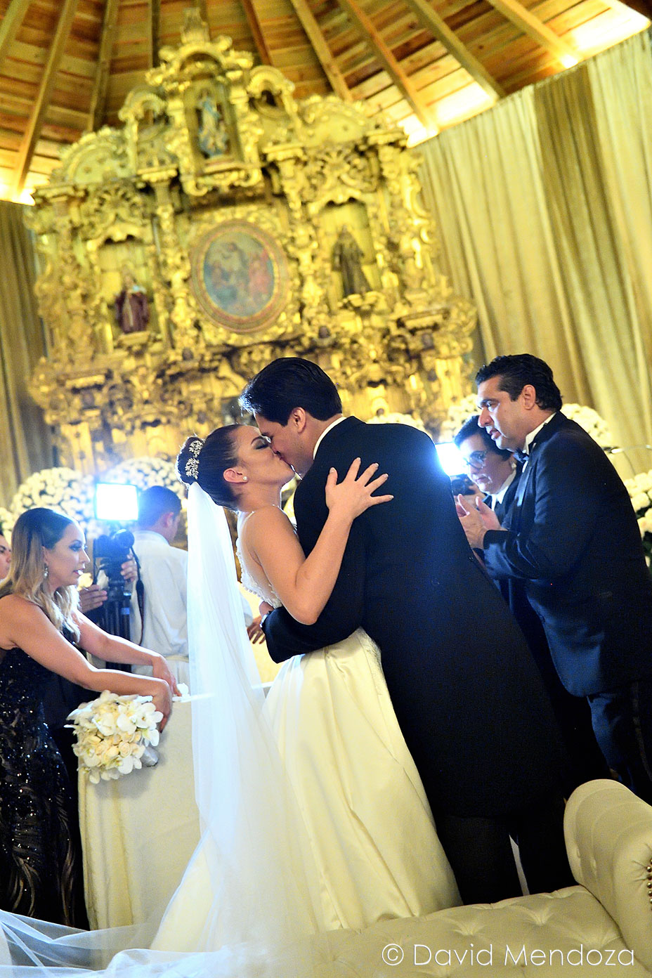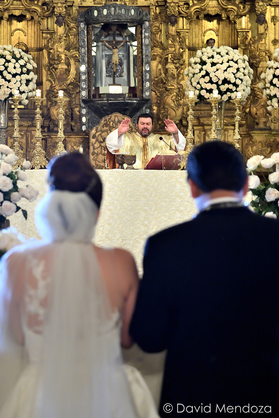 Tras una hora de ceremonia católica, la pareja fue proclamada como esposos ante Dios, y en el atrio, recibieron las primeras felicitaciones por su casamiento.