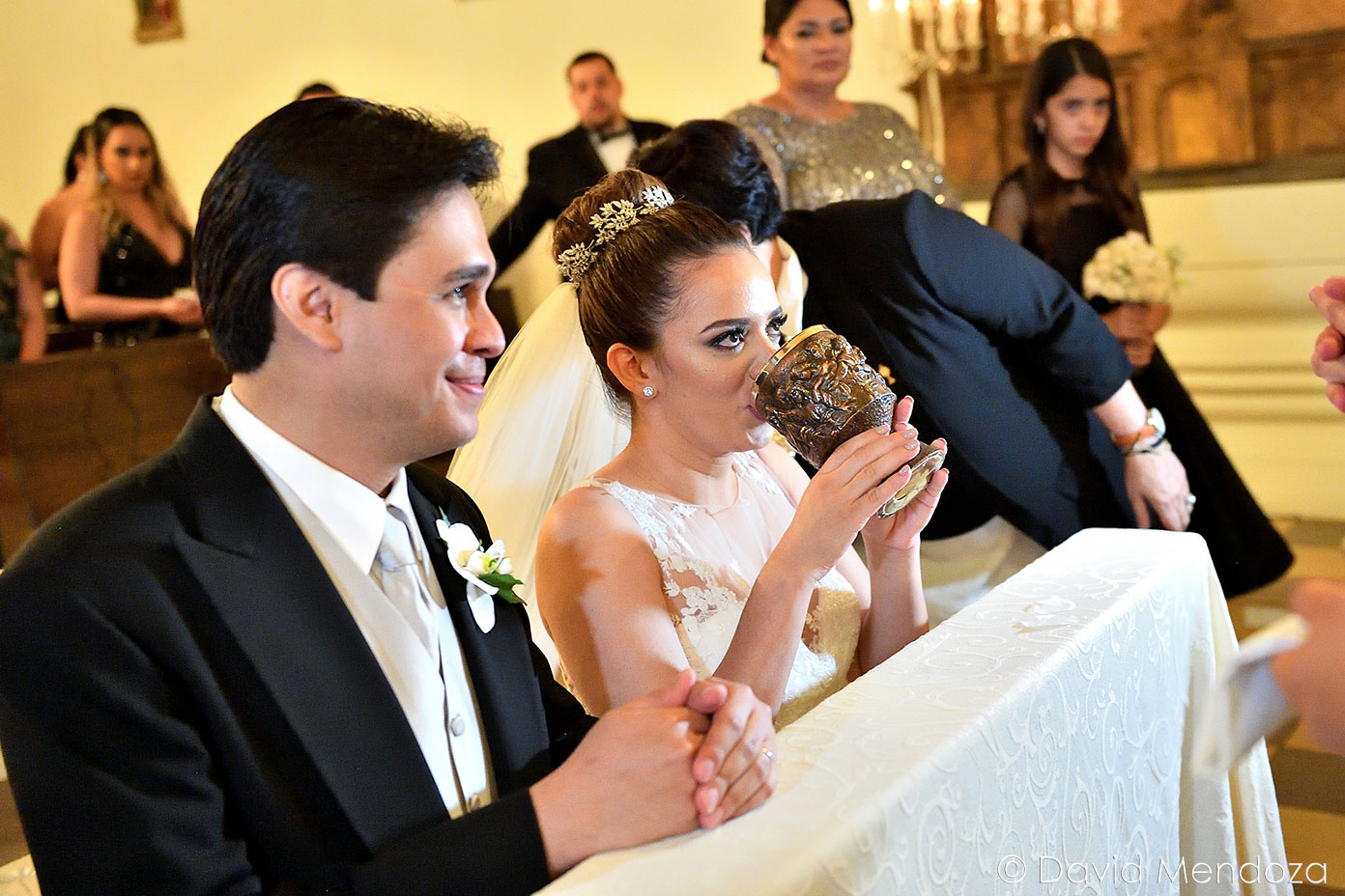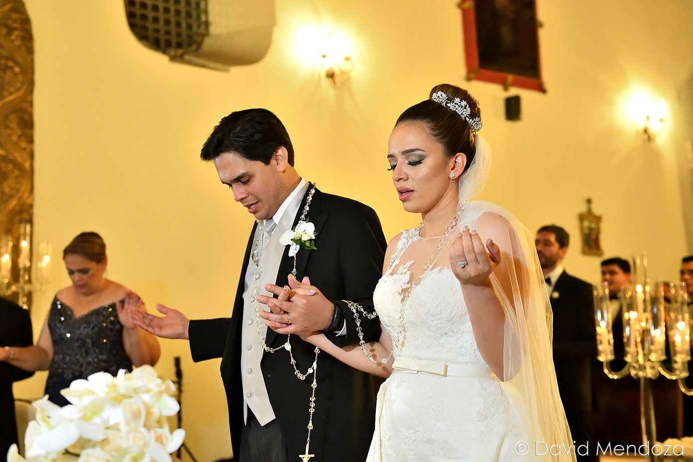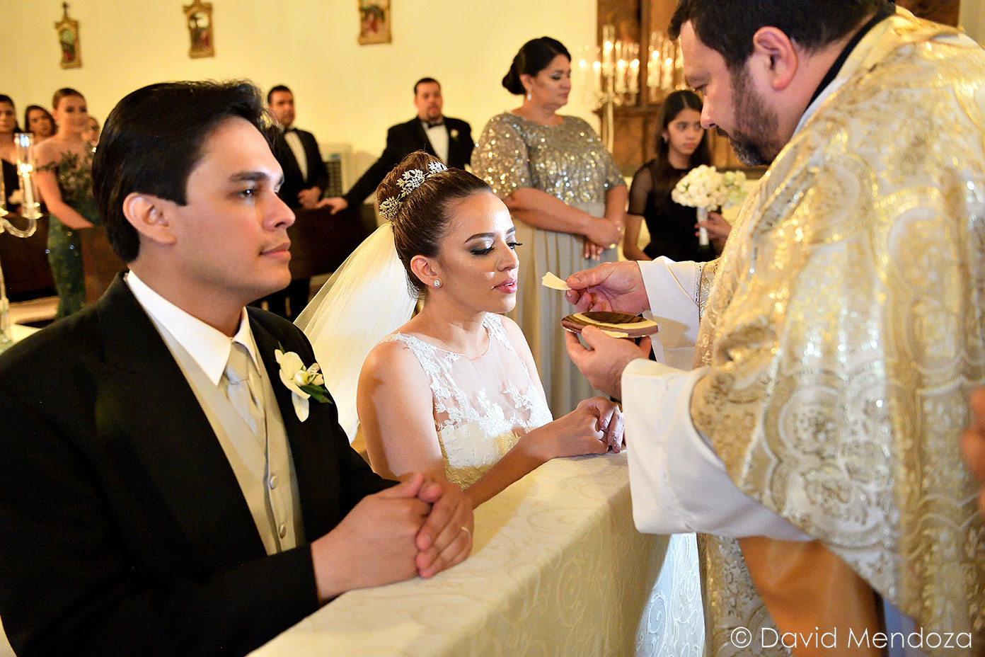 Atentos estaban los invitados, para contemplar la misa. Fueron partícipes de la unión, tras dos años de noviazgo oficial. El canciller de la Iglesia Católica de Honduras, Carlo Magno Núñez, los bendijo.