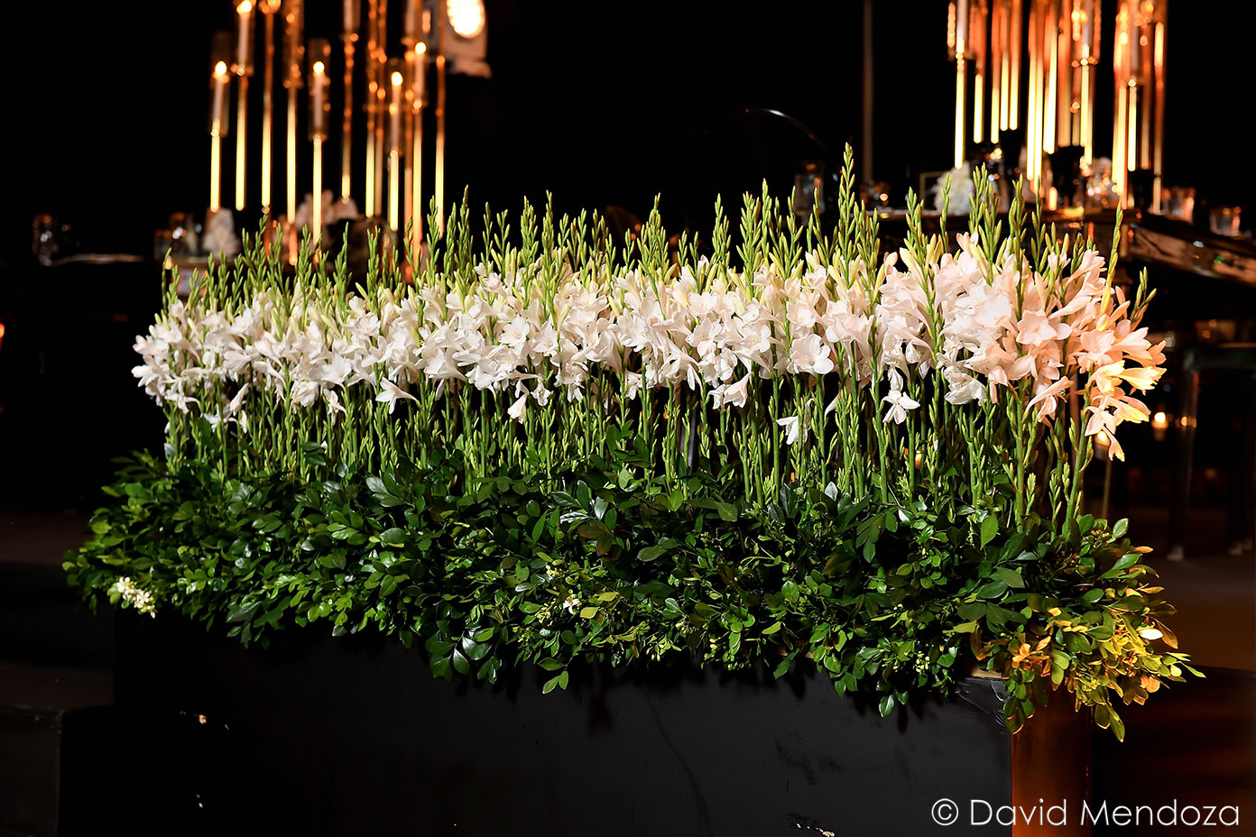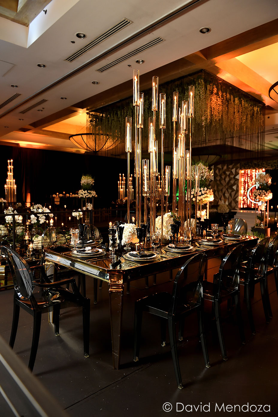 Además, reinaban los candelabros con velas eternas, lluvia de flecos y wisterias, todo en tono ivory.