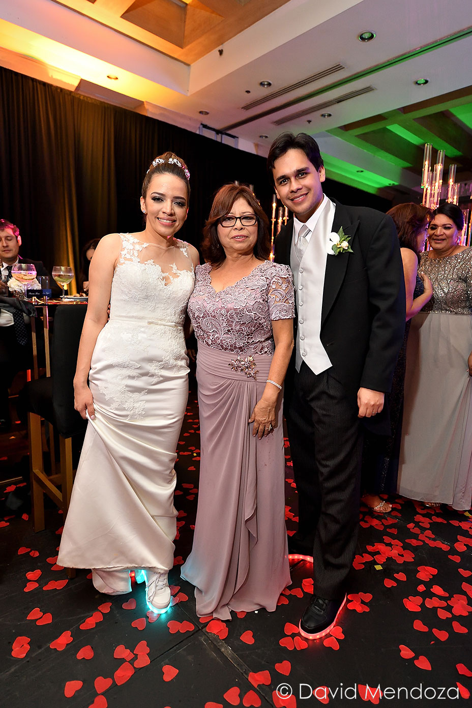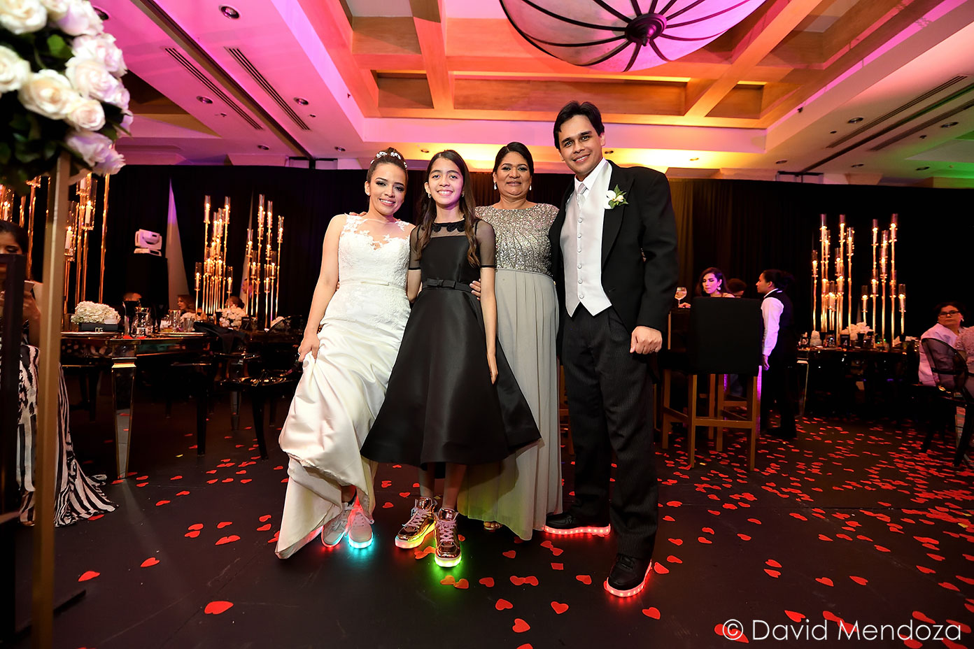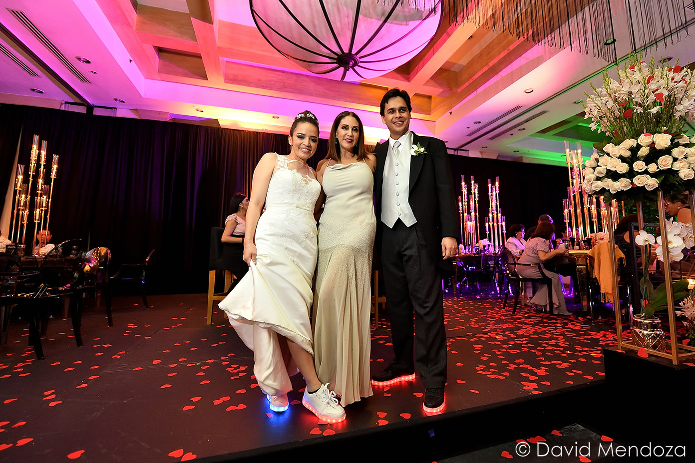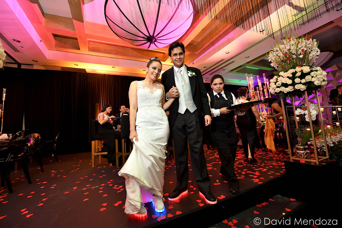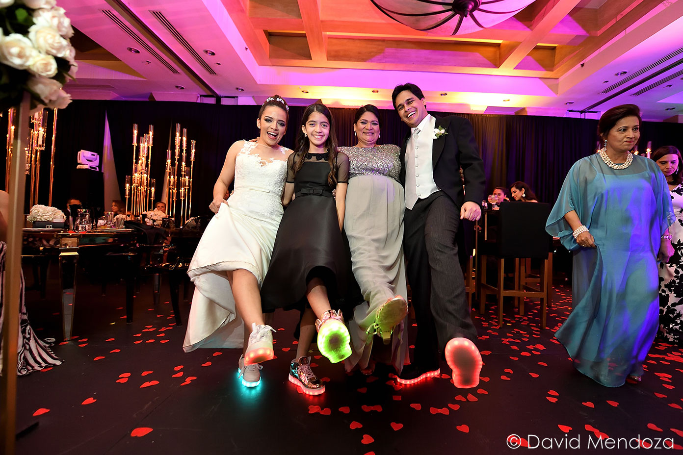 Por si fuese poco, y para más comodidad, seleccionaron zapatos deportivos con luces led, con los cuales bailaron toda la noche.