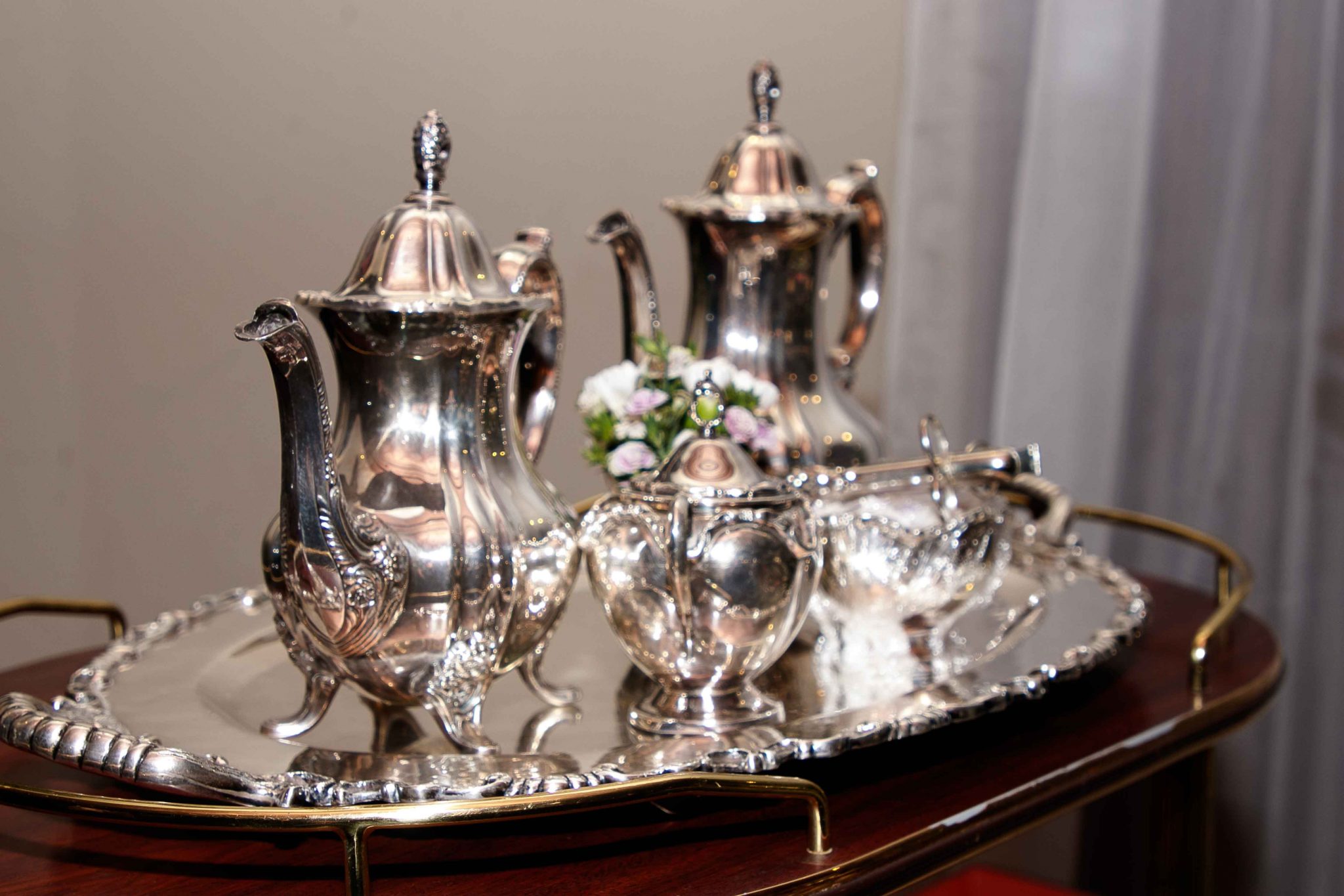 La artífice del ambiente interpretó la delicadeza y el refinamiento de Francia con juegos de té en plata pura, así como en porcelana y cristalería. Todo de colección familiar.