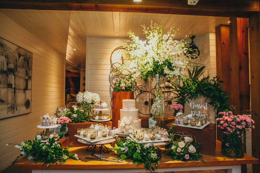 Para la ornamentación y planificación, A&A Events by Andrea Andonie creó una fabulosa decoración con detalles rústicos, exquisitas flores importadas, mucho follaje silvestre y los elementos más impecables y ornamentales.