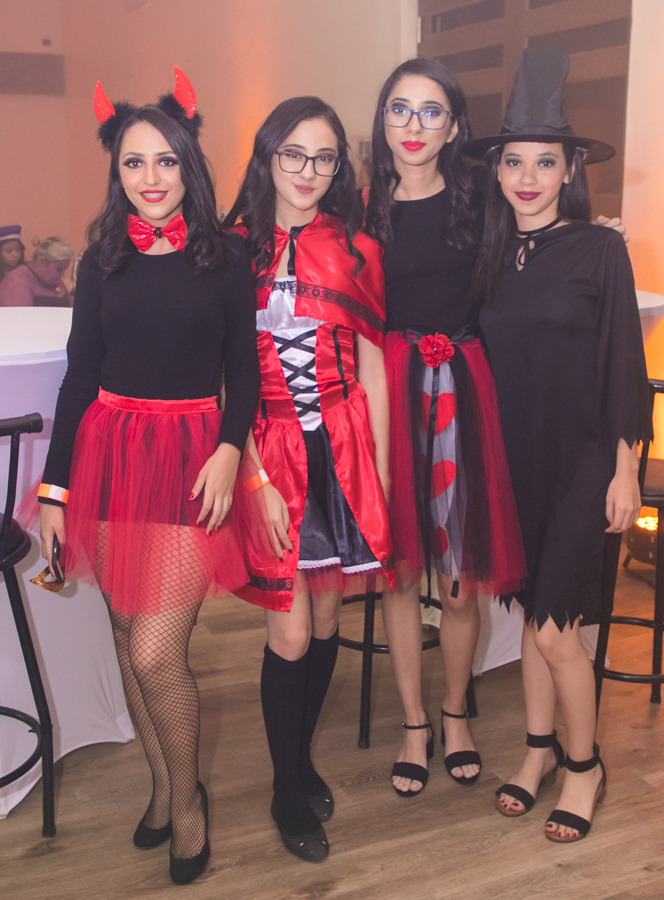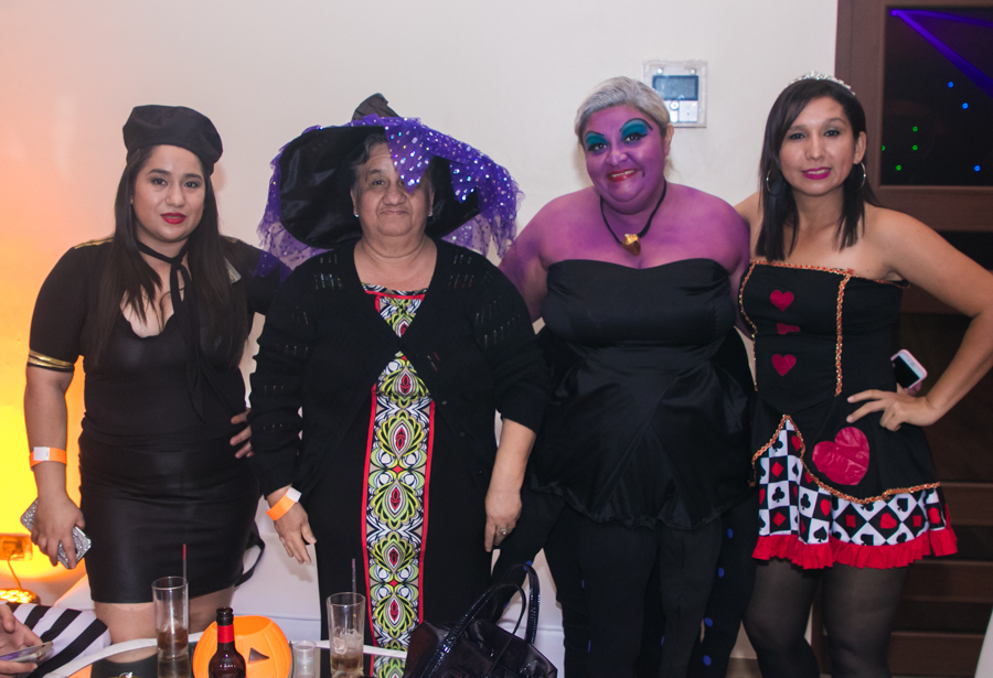 Nora y Altagracia Pinto con Sadia Belisle y Milagros Pineda en la fiesta de Halloween del hotel Maya Colonial. Foto: Gerardo Barrera