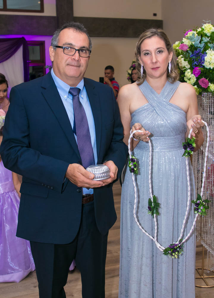 La celebración fue propicia para el protocolo civil y la bendición evangélica de los contrayentes. La abogada Wendy Galdámez y la pastora Jennifer Chichiraky, fueron encargada de legalizar y consagrar a los novios.