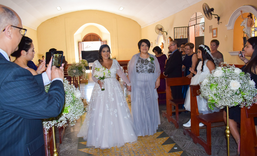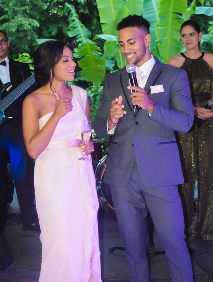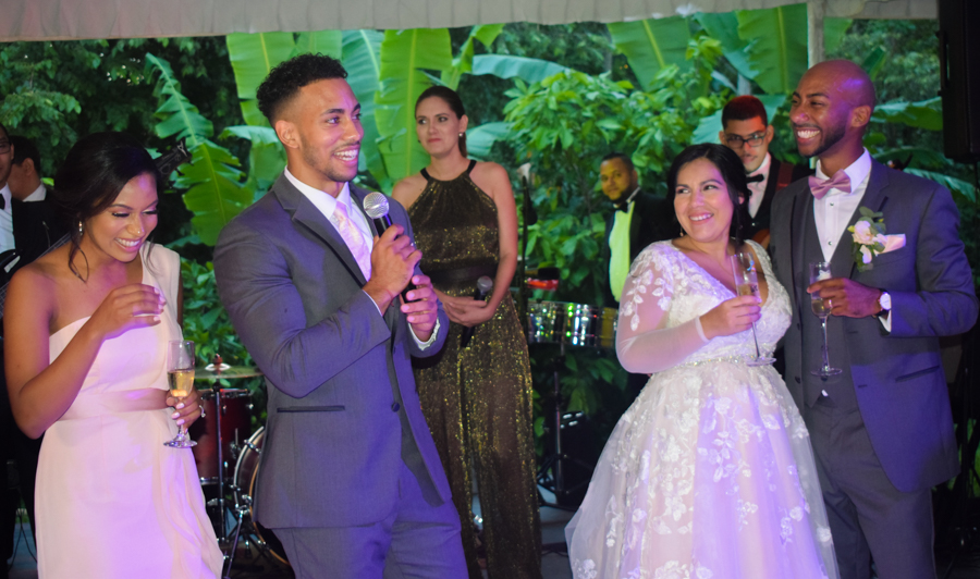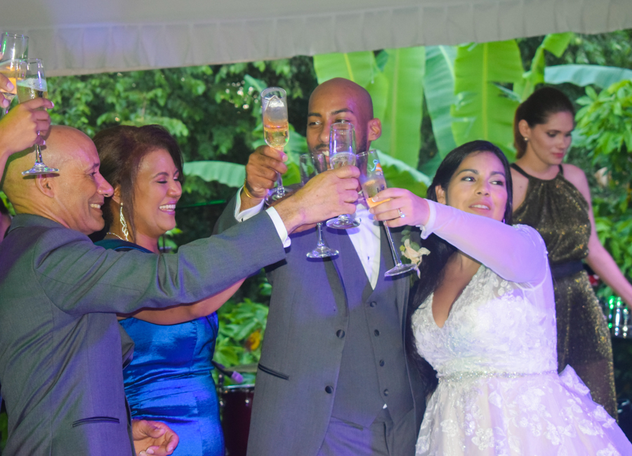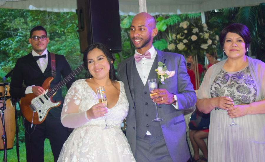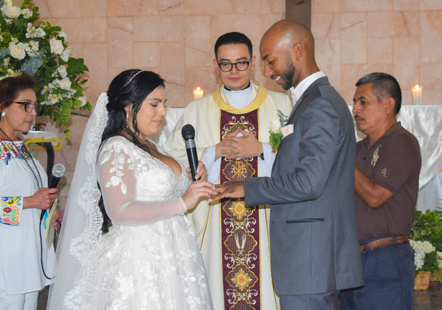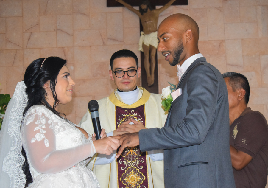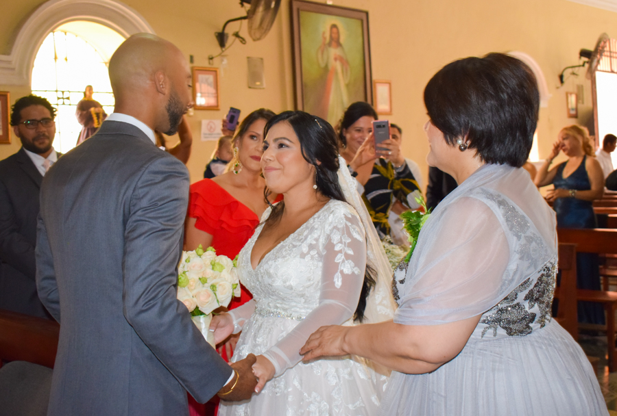 Tras la entrega de alianzas y el intercambio de promesas, la boda de Junny Chávez y Apolinar Batista culminaba entre aplausos y emoción, así como cantos sacros interpretados por el tenor lírico Kelsey David.