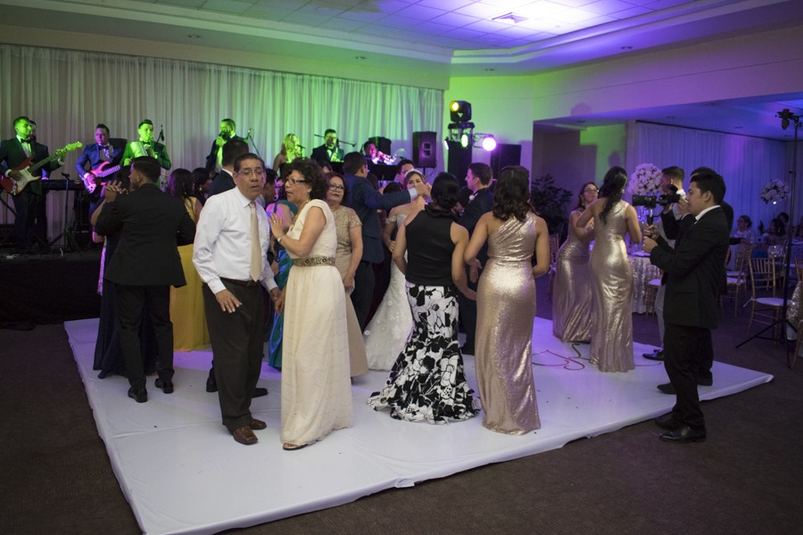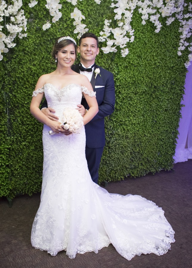 [/vc_column_text][thb_gap height=»30″][vc_column_text]La novia lucía hermosa, con un ajuar en color blanco con escote corazón y detalles de pedrería. El novio optó por el tradicional black suit nupcial.Una vez finalizada la ceremonia, los invitados y los ya esposos, se desplazaron hasta el salón Las Islas, donde fueron ovacionados por los presentes.