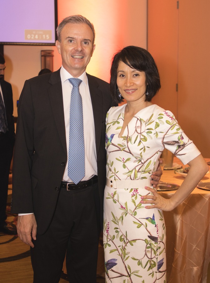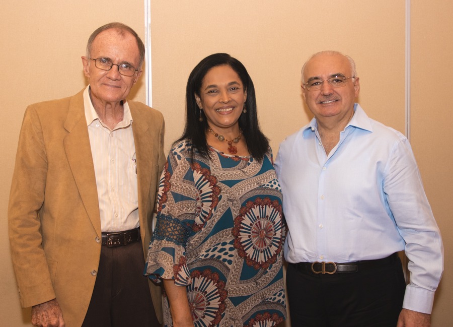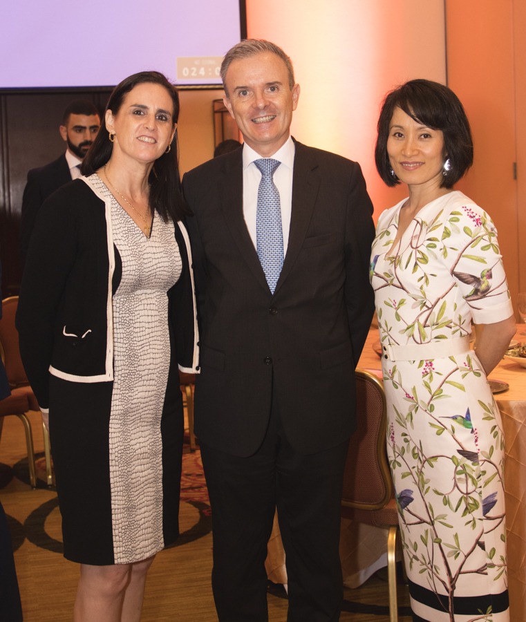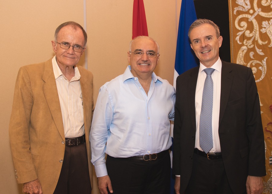 María Isabel Rodríguez con Guillermo y Naomi KIrkpatrick compartieron en la cena de la asociación Cuerpo Consular Sampedrano. Foto Gerardo E. Barrera