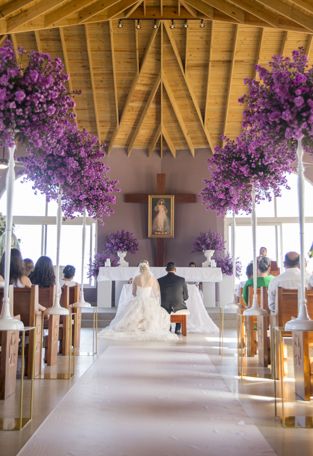 La iglesia católica San José estuvo decorada de forma fantástica, en el enlace nupcial de Noren Cabellero y Albert García. Foto: Gustavo Banegas