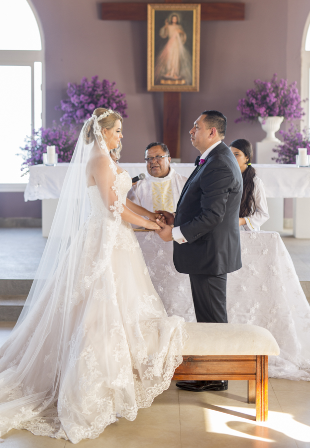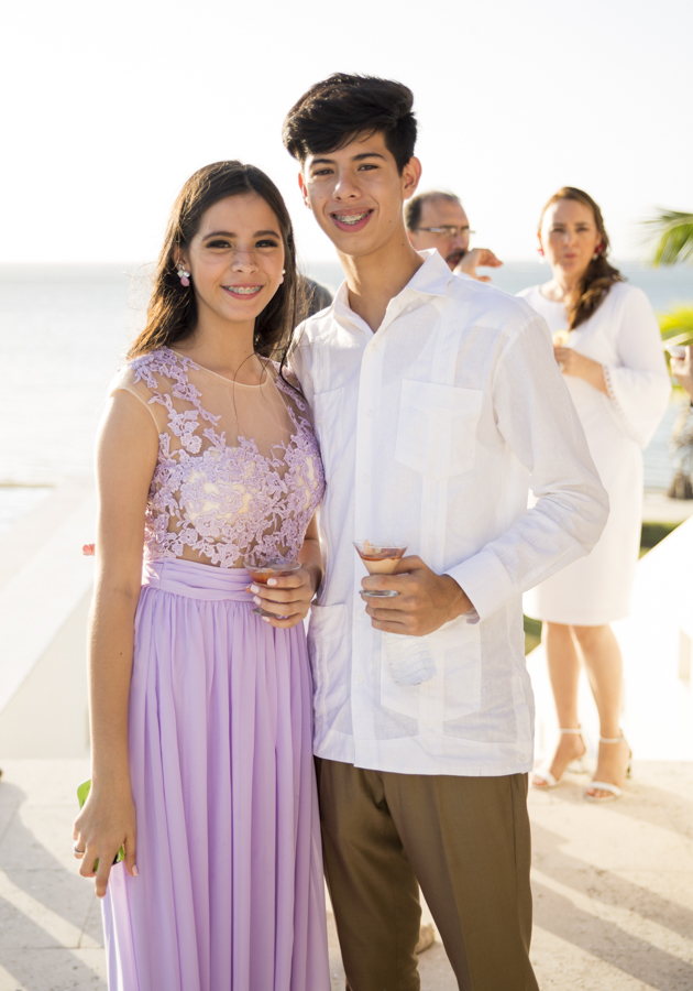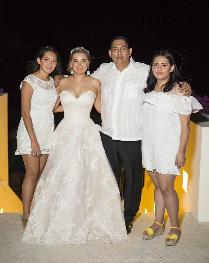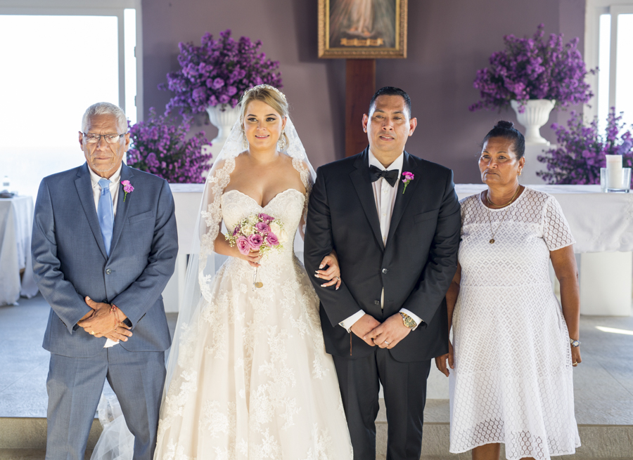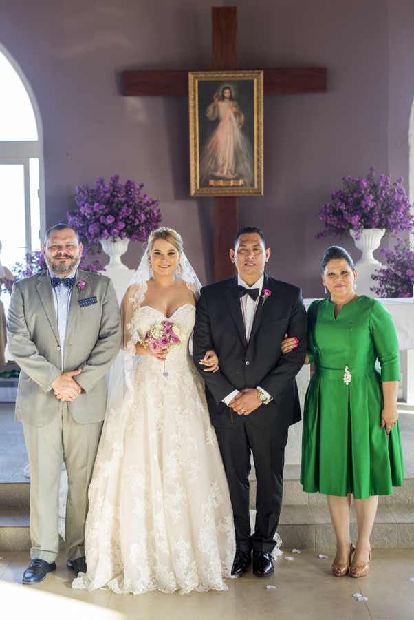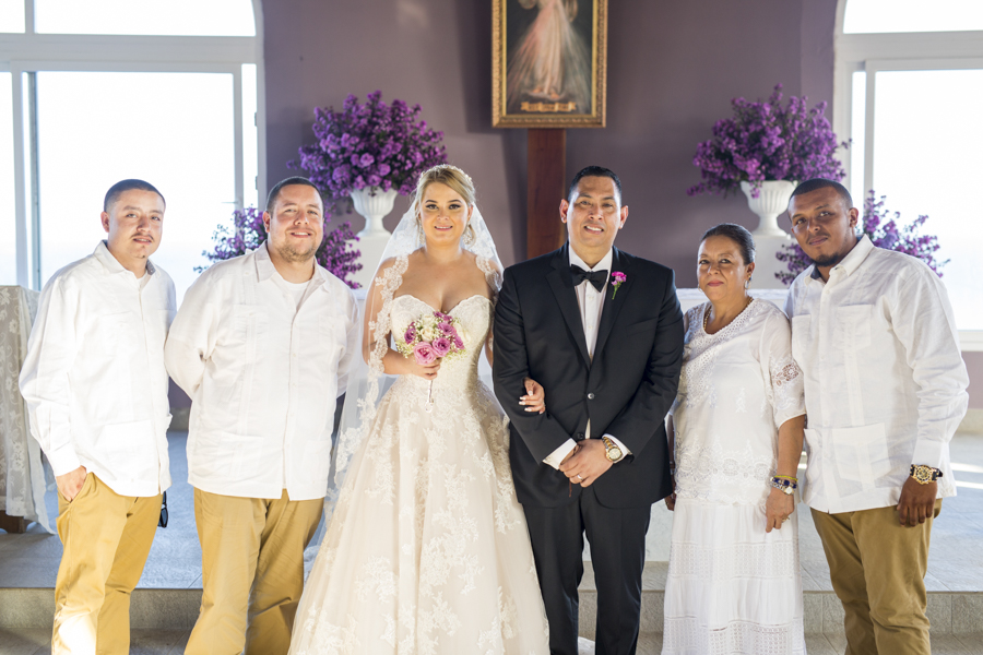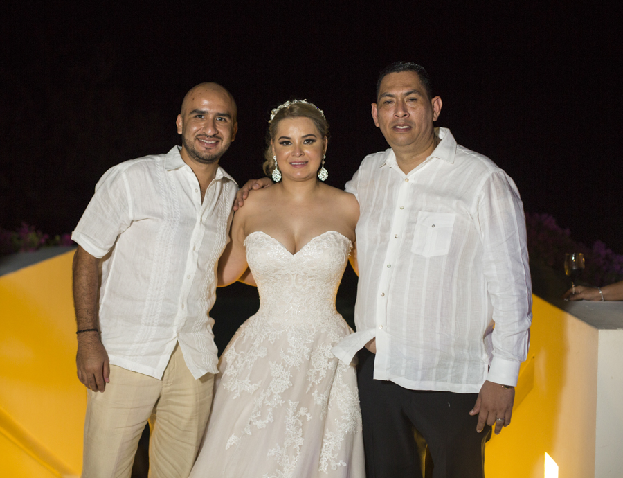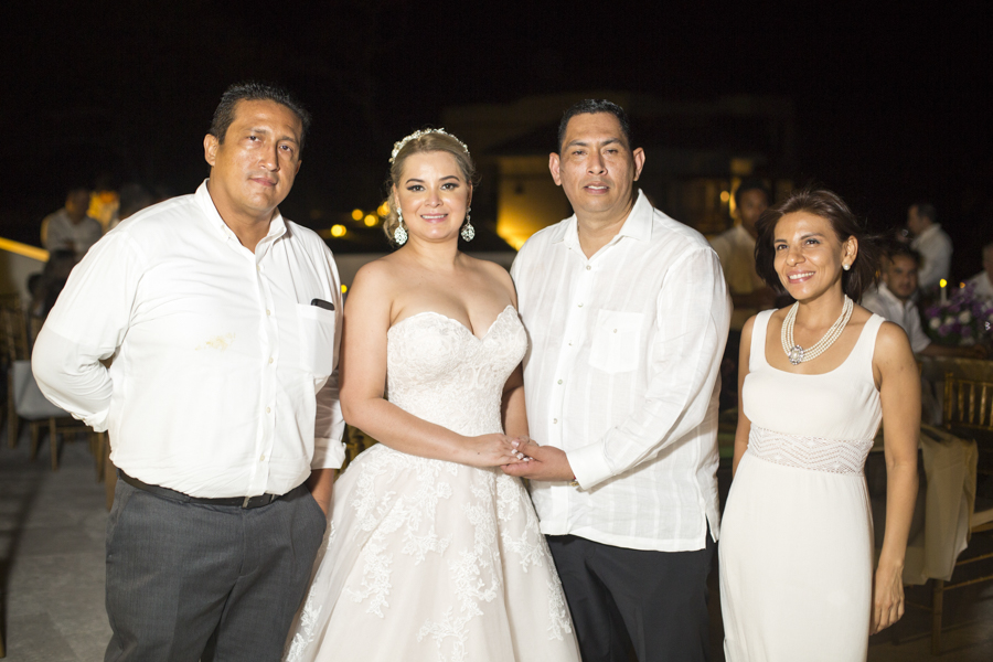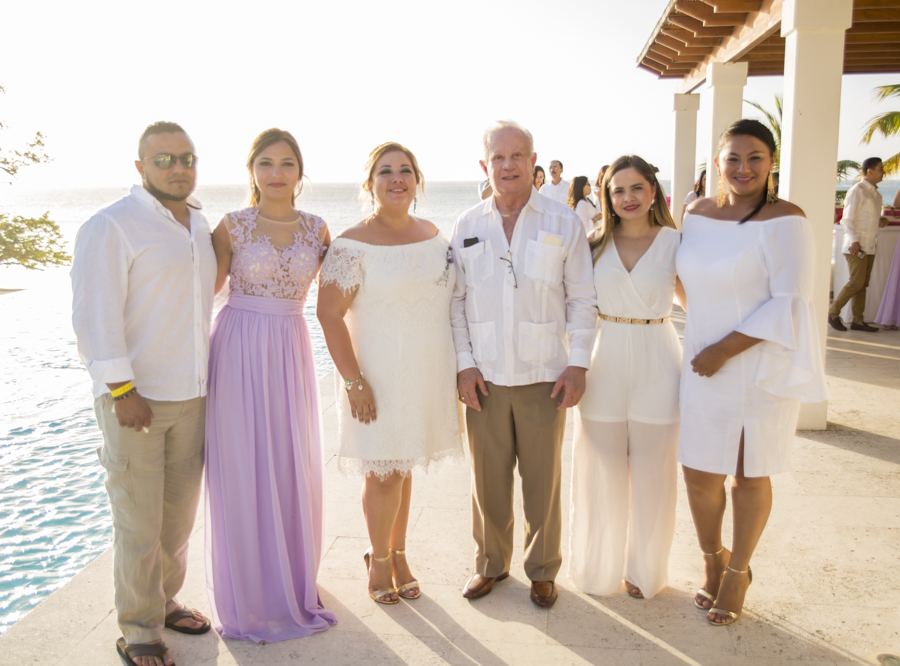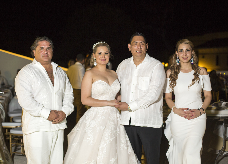 [/vc_column_text][thb_gap height=»30″][vc_column_text]En ambas ceremonias, la pareja fue acompañada por sus seres más queridos y selectos invitados, además de sus apreciados padrinos de boda, Ana y Omar Zúniga; quienes en todo momento les desearon grandes dichas.Lo mejor en delicias con mariscos, así como música propia de la isla y lo mejor en manjares y licores, fueron dispuestos al gusto de los cerca de cien invitados.