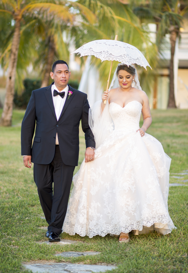 [/vc_column_text][thb_gap height=»30″][vc_column_text]La primera estancia, fue la parroquia de la iglesia católica San José en French Harbour, donde Noren Caballero y Albert García se juraron fidelidad ante el Creador, en una ceremonia oficiada por el padre Norberto Marroquí.Para la ocasión tan importante, la novia optó por un diseño en el tradicional blanco, de entalle imperio y escote corazón, diseño que adquirió en la famosa boutique Leggenda Bridal de Coral Gables, en Miami.[/vc_column_text][thb_gap height=»30″][thb_image alignment=»center» image=»32667″][vc_column_text]