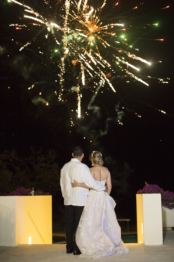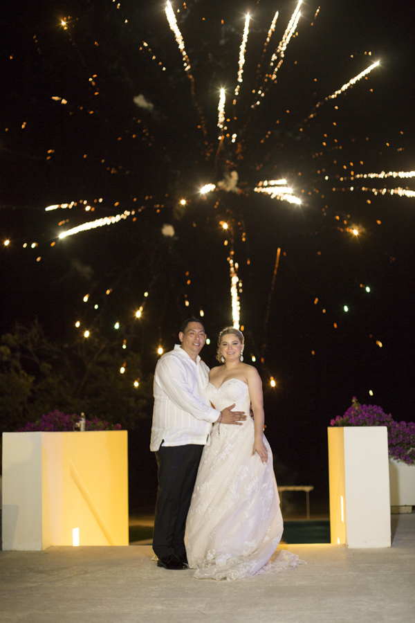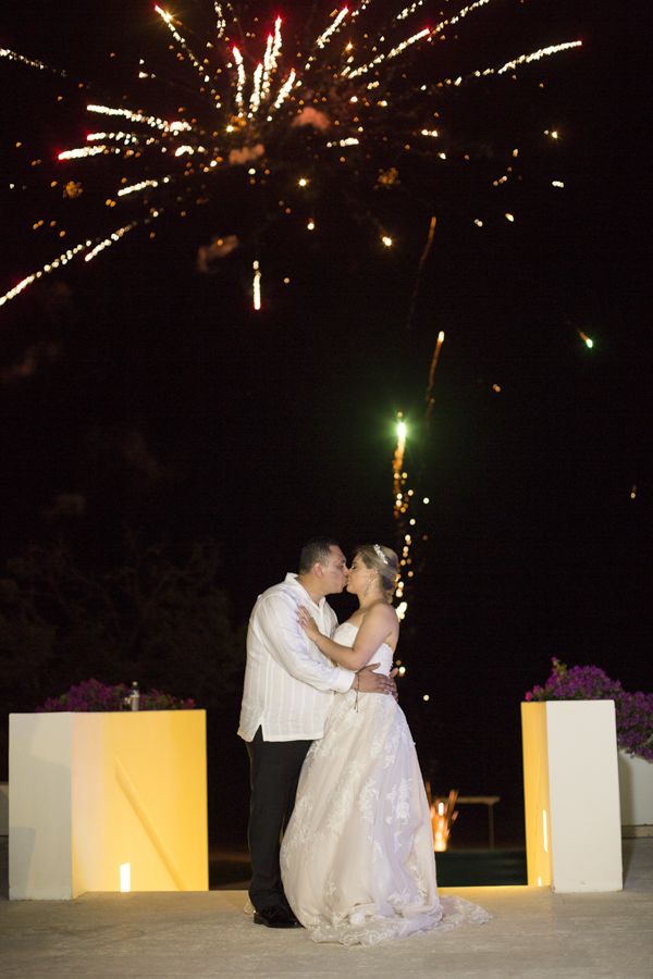 Una elegante recepción fue ofrecida después del acto en la playa. La pareja festejó como nunca su gran amor, y se mostraron muy románticos bajo el espectáculo de fuegos artificiales preparados para su agasajo.[/vc_column_text][thb_gap height=»30″][thb_image alignment=»center» image=»32742″][vc_column_text]