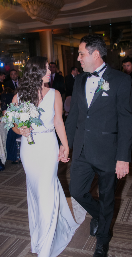 De inmediato, salieron tomados de la mano hasta el foyer del club, para prepararse y hacer su entrada triunfal ya como un matrimonio legalmente constituido.