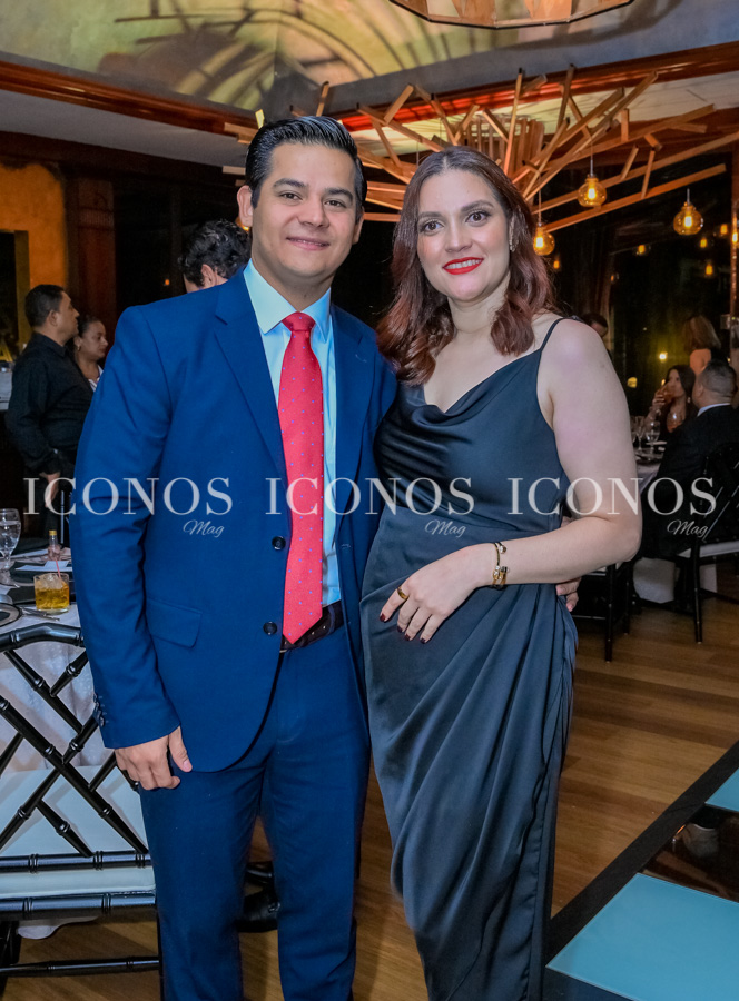 Lody Awwad ha lucido un luxury dress en tono gold de la colección Dubai de Amirat Boutique. Mauricio Flores ha vestido un traje confeccionado a la medida.