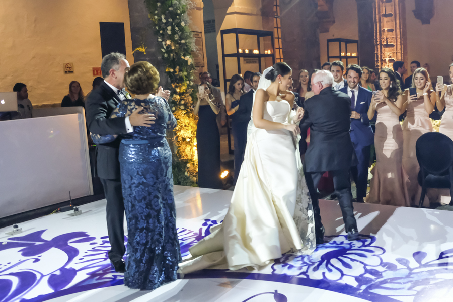 [/vc_column_text][thb_gap height=»30″][vc_column_text]Los balcones coloniales y las fuentes con agua, crearon ese mágico concepto que enmarcó la felicidad de los ahora esposos Delon Kafati. Le dieron drama visual, los acentos de azul índigo, que le dieron color a la recepción.Los novios, con un hermoso vals, inauguraron la celebración. Los brindis y ese mensaje de emoción, coronaron de júbilo el banquete.[/vc_column_text][thb_gap height=»30″][thb_image image=»35675″][vc_column_text]