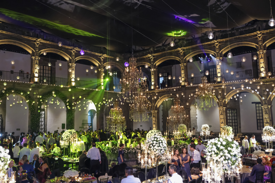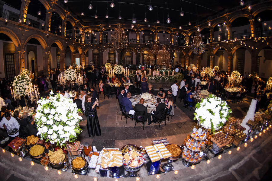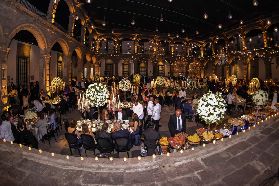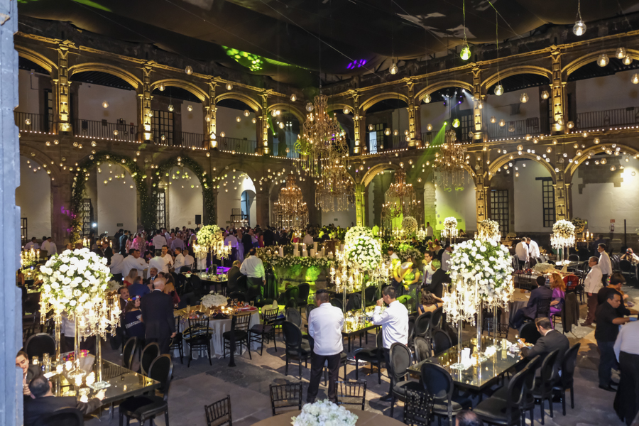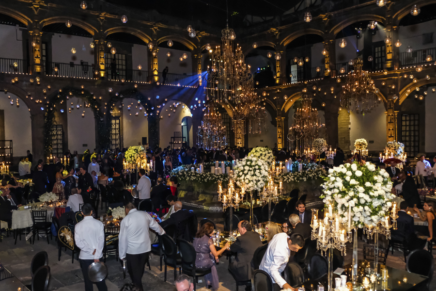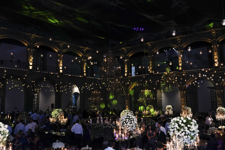 [/vc_column_text][thb_gap height=»30″][vc_column_text]Desde Honduras llegó la wedding planner Alexandra Lockmer, con todo un derroche de creatividad y diseño ornamental, par hacer de ese histórico lugar, todo un espectáculo visual para los invitados.Las rosas, las velas de enormes dimensiones, un torrente de colgantes de cristales, erguidos candelabros con esferas de rosas y efectos ambas con luz led, crearon un ambiente de genuina distinción.