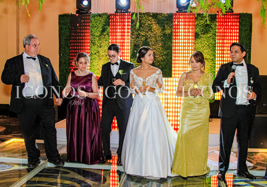 Al finalizar la ceremonia, los nuevos esposos y sus relaciones sociales se han trasladado a la recepción ofrecida en el hotel Clarion Tegucigalpa.