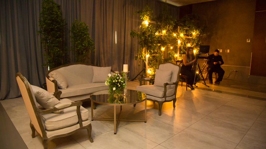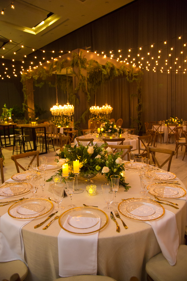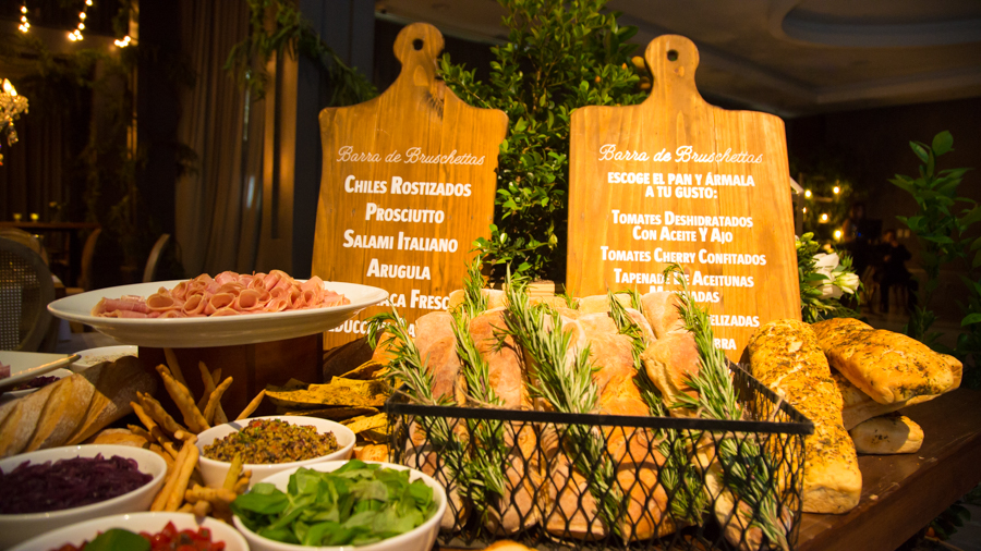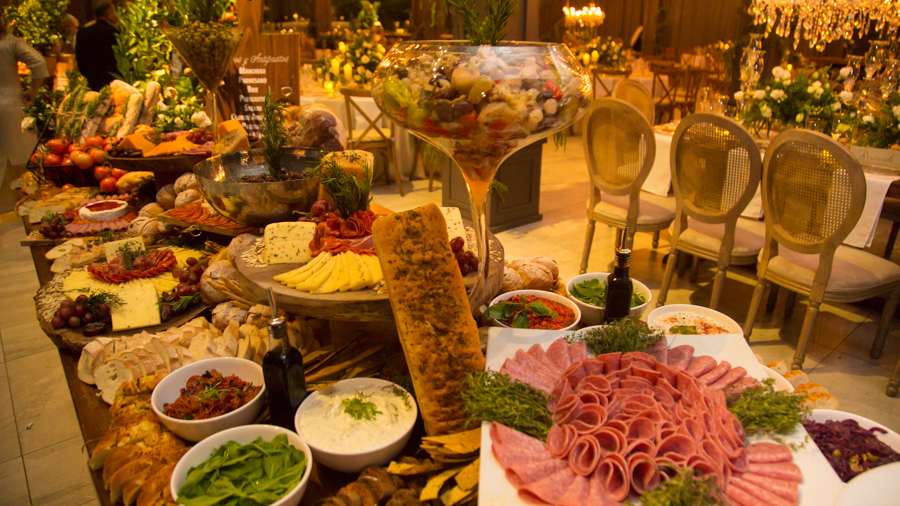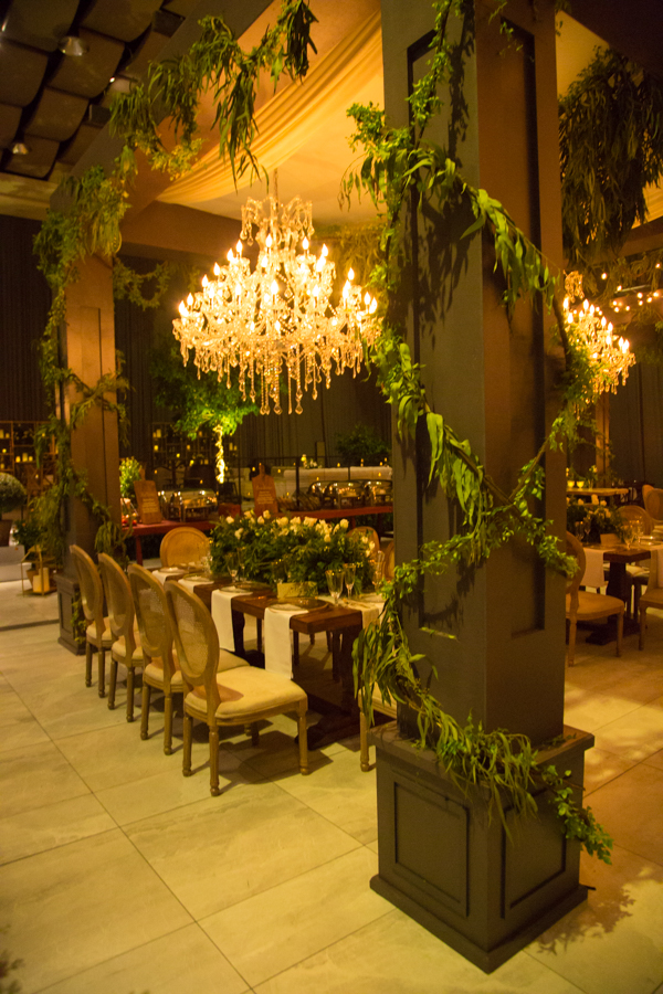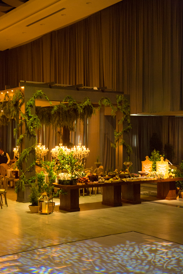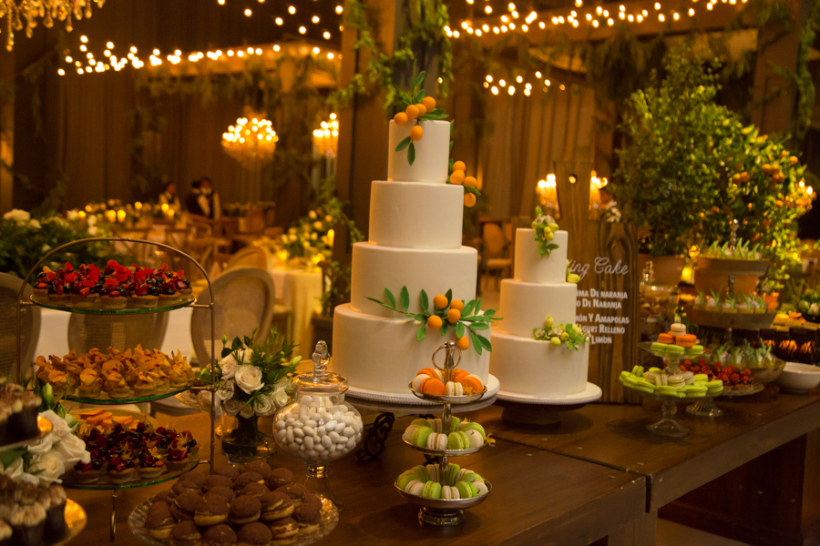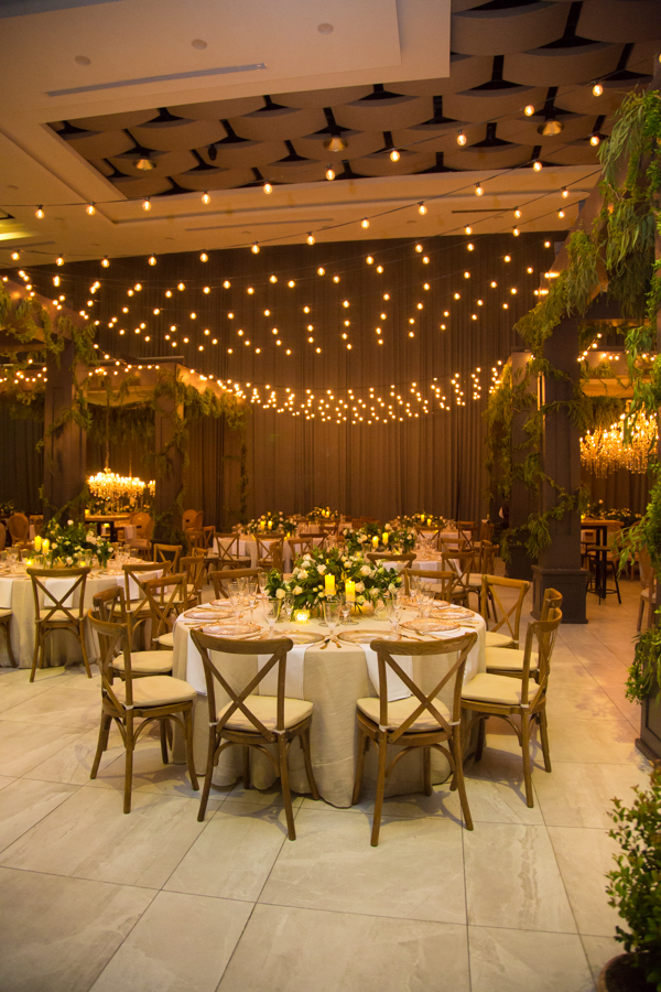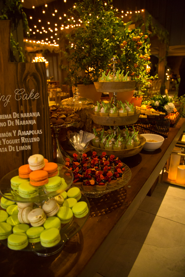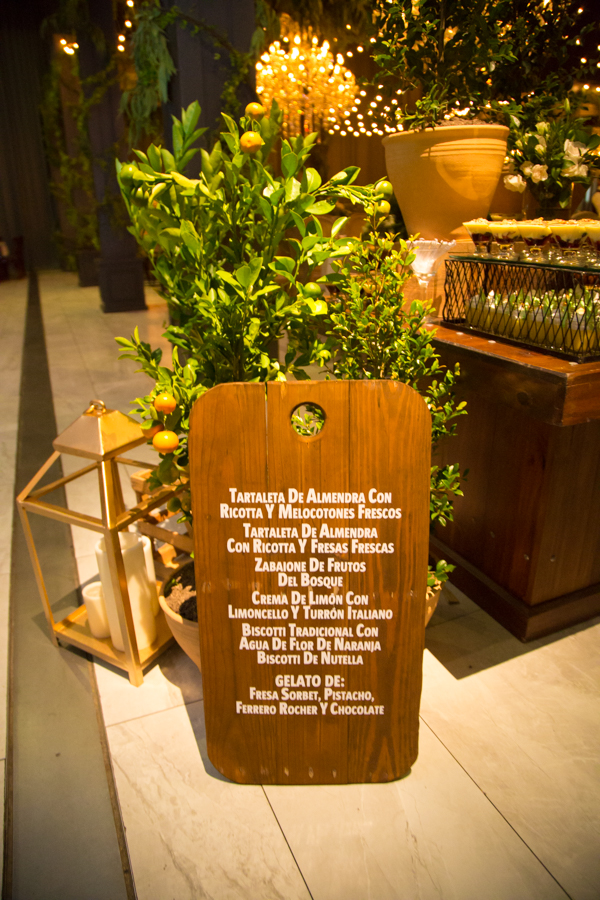 La recepción fue una mezcla de frutas, hortalizas, muchas guirnaldas de Sauce de montaña, sillas campestres, ambientes propios de la campiña italiana con un toque glam y vintage, así como lo floral, donde se mezcló primavera pura. Alejandro Pineda creó los arreglos.