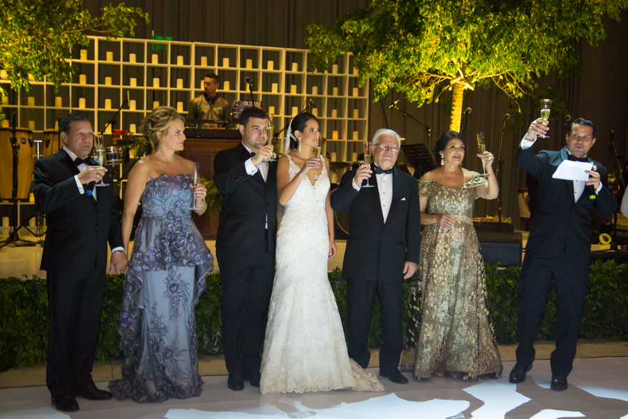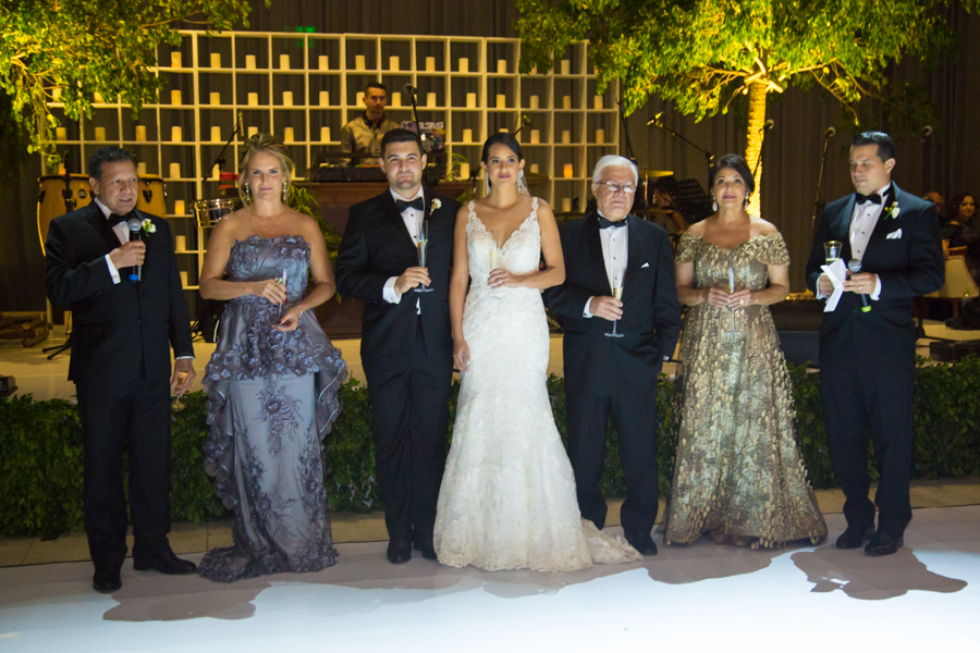 En primera fila y con notorio orgullo estaban los padres de los contrayentes, los apreciados Marbella Bendeck Turcios y Ronald Yuja y Vivian Jezycki de Chahín y Jhonny Chahín.