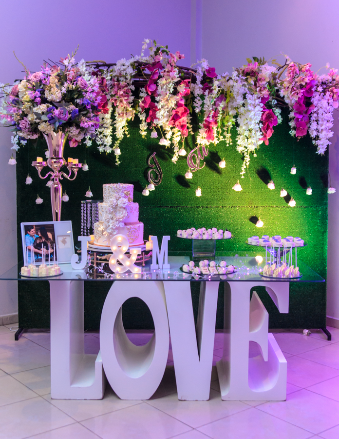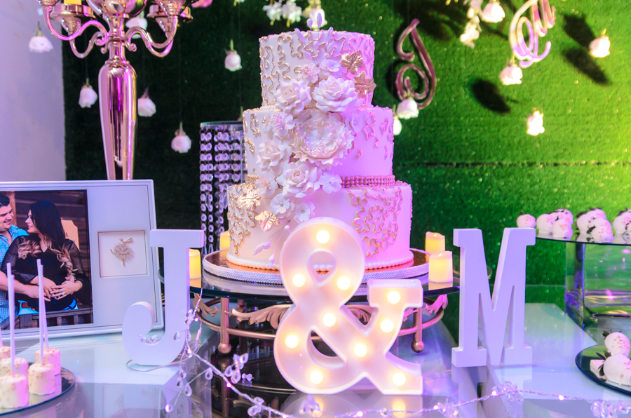 En una esquina del salón, una primaveral mesa de dulces llamaba la atención de los invitados. Además, del espléndido cake de tres pisos by Hannan Bakery.
