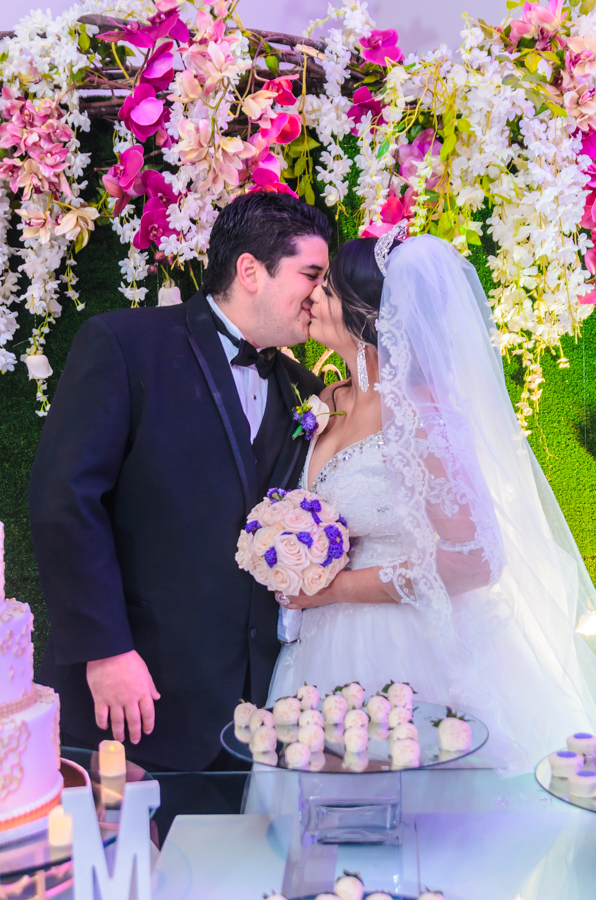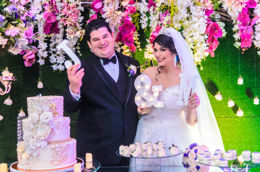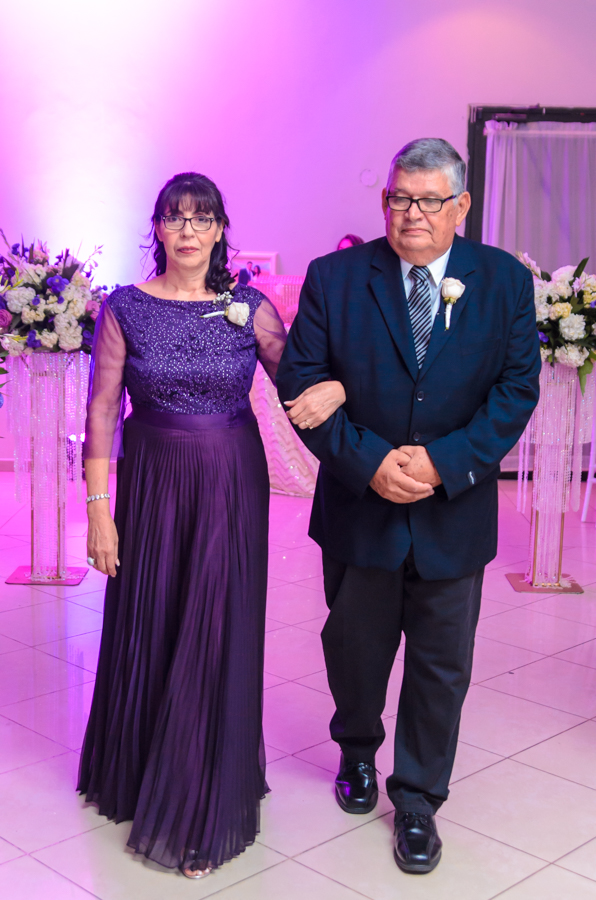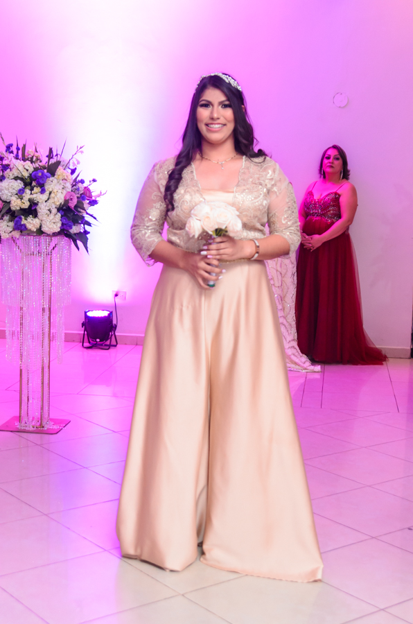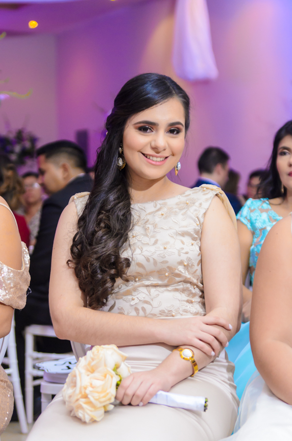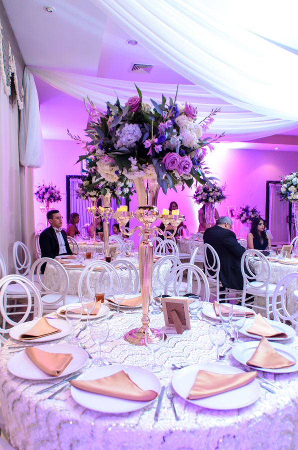 La celebración fue engalanada con una decoración de tonos primaverales, blanco y magenta en destellos led.