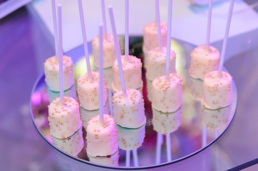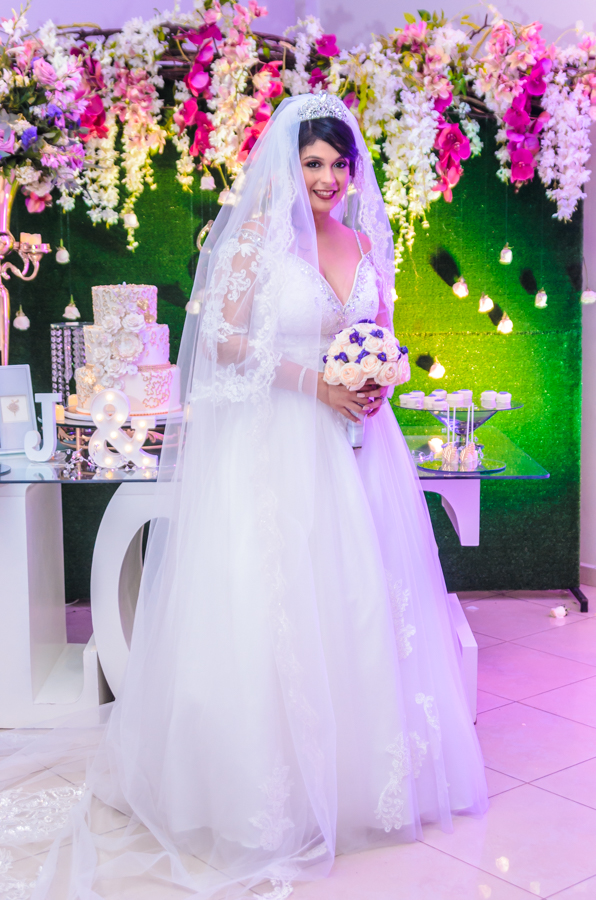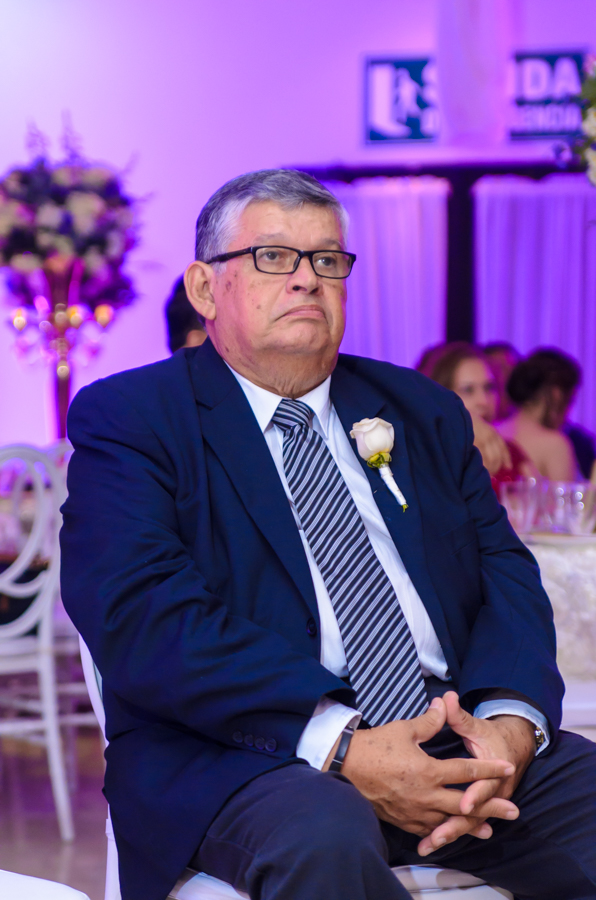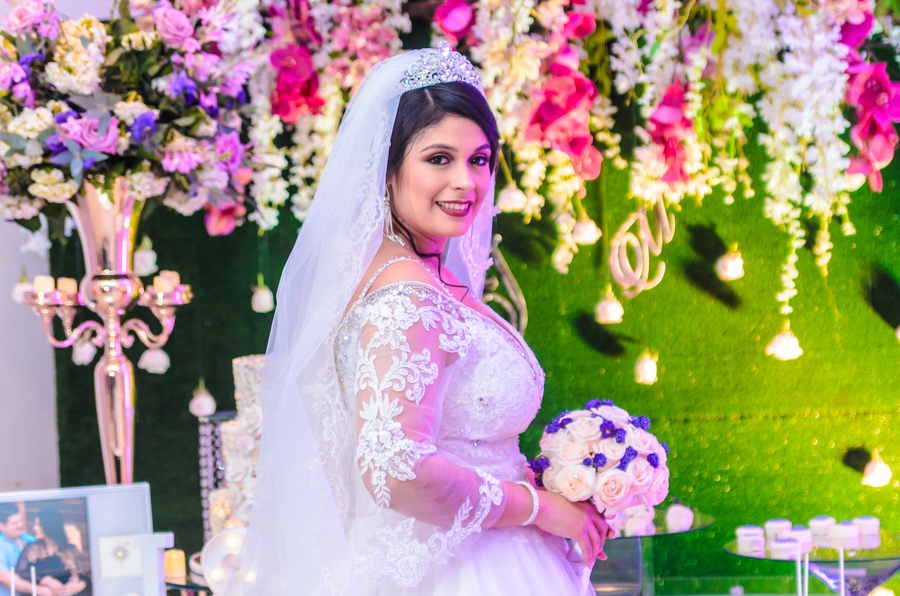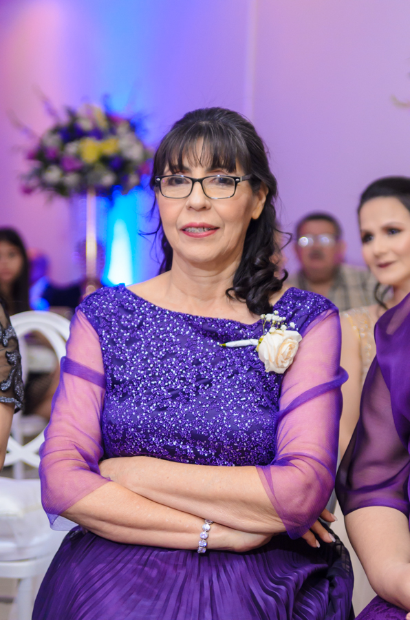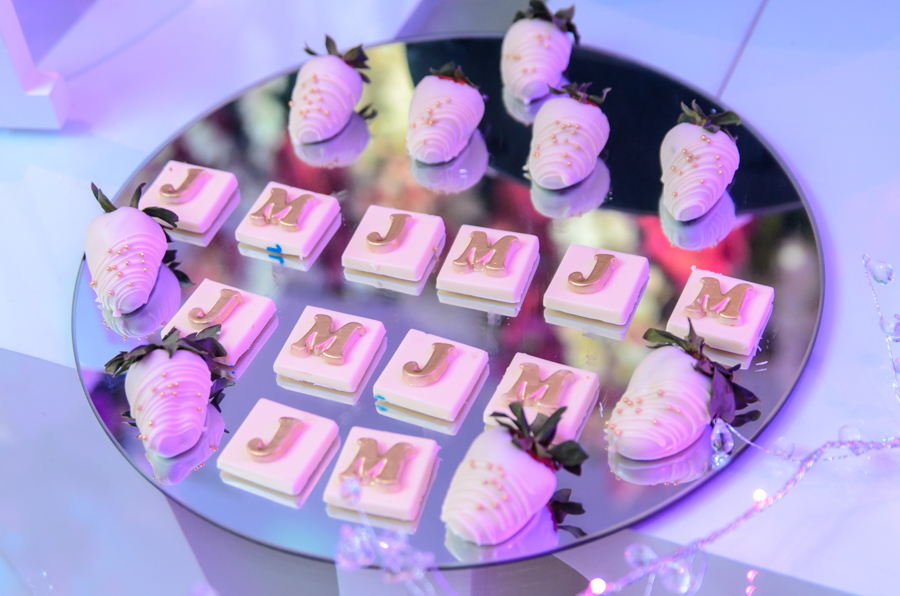 La celebración fue engalanada con una decoración de tonos primaverales, blanco y magenta en destellos led.