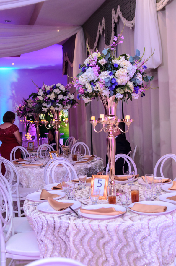 Cada ambiente, fue adornado con gigantes y elegantes candelabros y arreglos overside by Jackeline Cabrera.