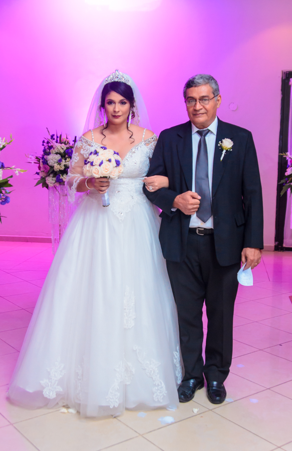 A un paso lento y llena de mucha emoción, la novia caminaba del brazo de su padre, dejando ver su buen gusto para el día más importe de su vida.